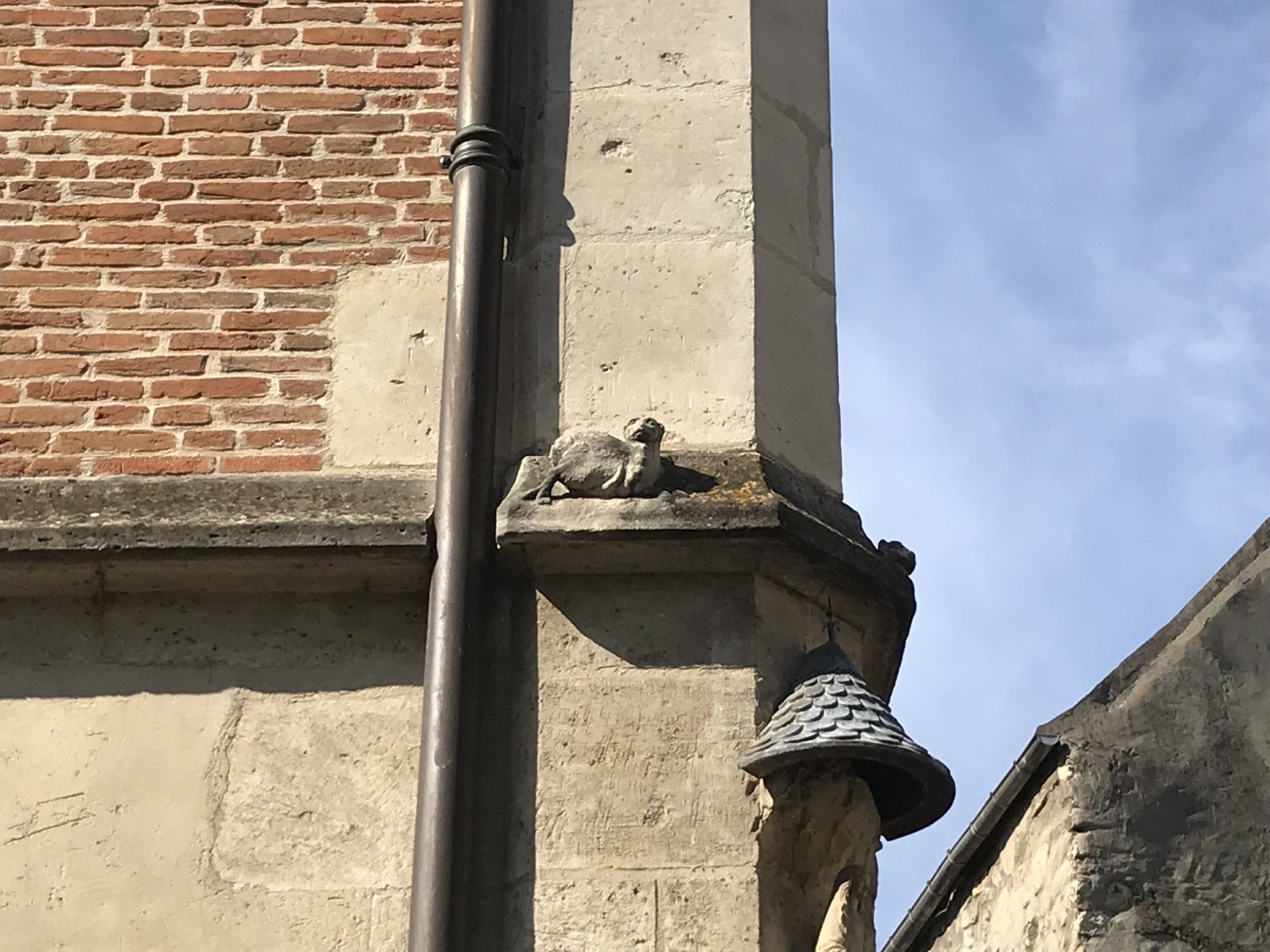 Senlis (Oise ). La salamandre, baffie ou lebraude est un reptile légendaire, à ne pas confondre avec l'amphibien réel. Il était réputé pour vivre dans le feu et s'y baigner, et ne mourir que lorsque celui-ci s'éteignait. Mentionnée pour la première fois par Pline l'Ancien, la salamandre devint une créature importante des bestiaires médiévaux ainsi qu'un symbole alchimique et héraldique auquel une profonde symbolique est attachée.