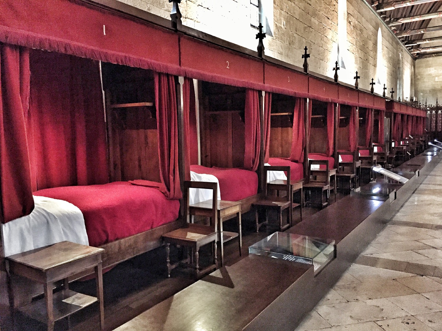 Hospice de Beaune, la salle des pôvres de l’Hôtel-Dieu et ses rangées de lits.