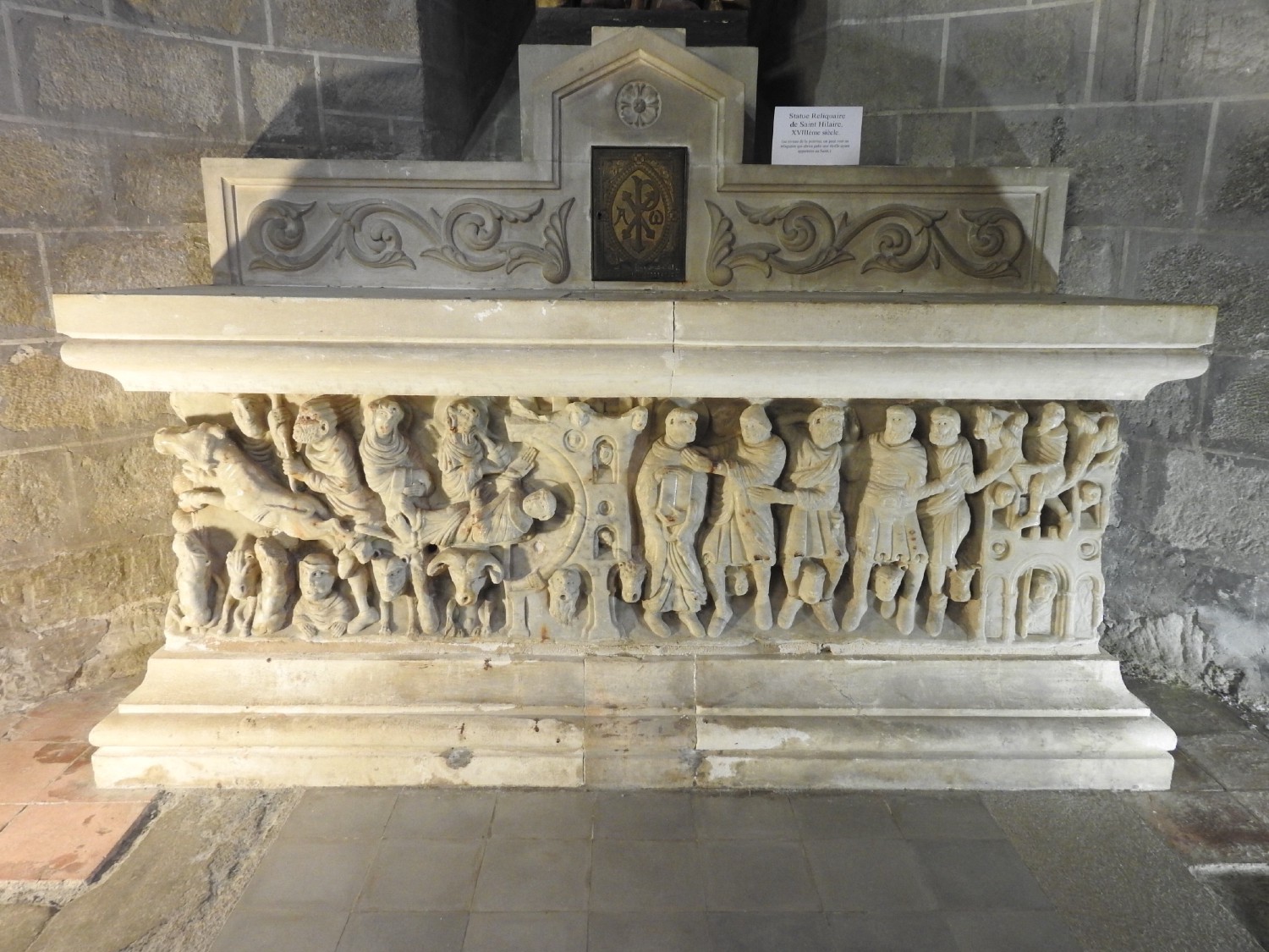 L'église abbatiale renferme un sarcophage dit sarcophage de saint Sernin. Ce coffrage sculpté d'un seul bloc dans du marbre blanc des Pyrénées est attribué au maître de Cabestany.