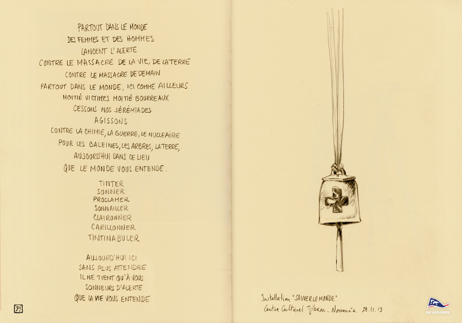 Au centre culturel Tjibaou de Nouméa, une installation de l'exposition sauver le monde... Très belle idée que ce texte et ce geste pour sonner l'alerte !!