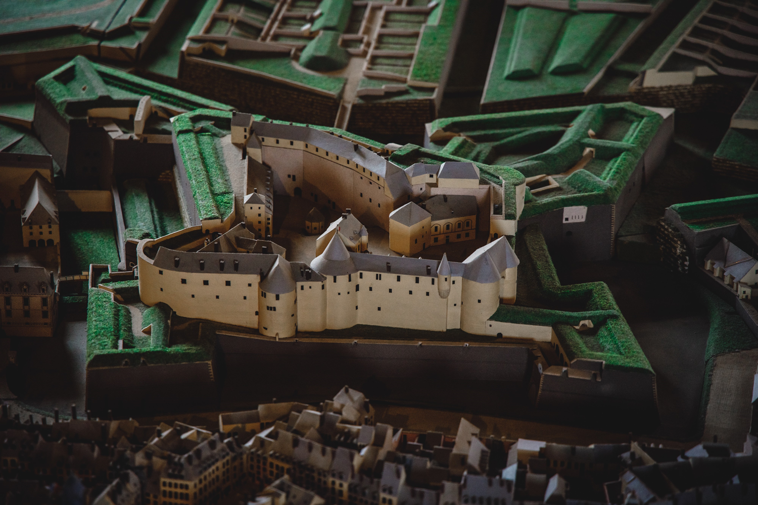 The Panorama Room of the Sedan Castle (Ardennes) features a fascinating model of the city in 1830, measuring 7 metres by 4.5 metres. Conceived by Jean-Jacques Dromby, the work required seventeen years of work by a handful of volunteers with a passion for history The entire city is reconstructed in great detail, including chimneys and gardens. One discovers the system of fortifications, most of which were demolished after 1870, as well as the districts that disappeared during the bombing of May 1940, which destroyed 34% of the city.