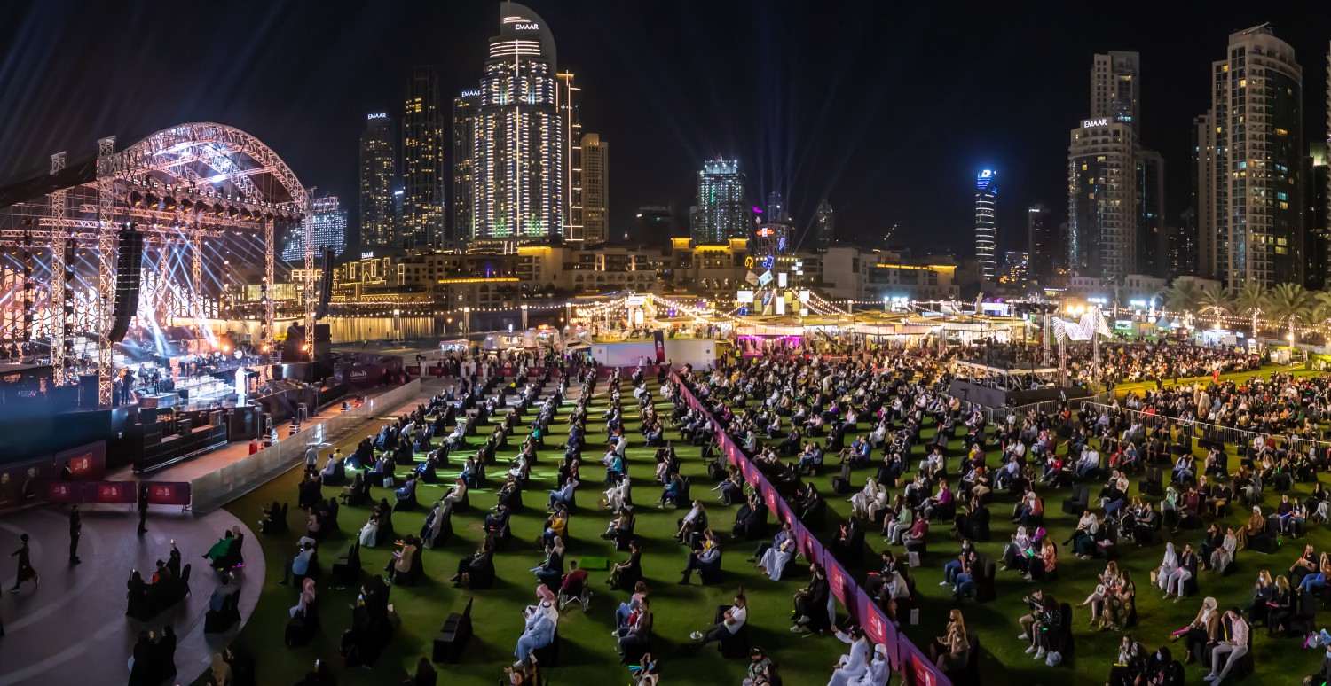 Burj Park, by the base of the world's tallest tower, sets a stage for leading events in the city such as the Dubai Shopping Festival