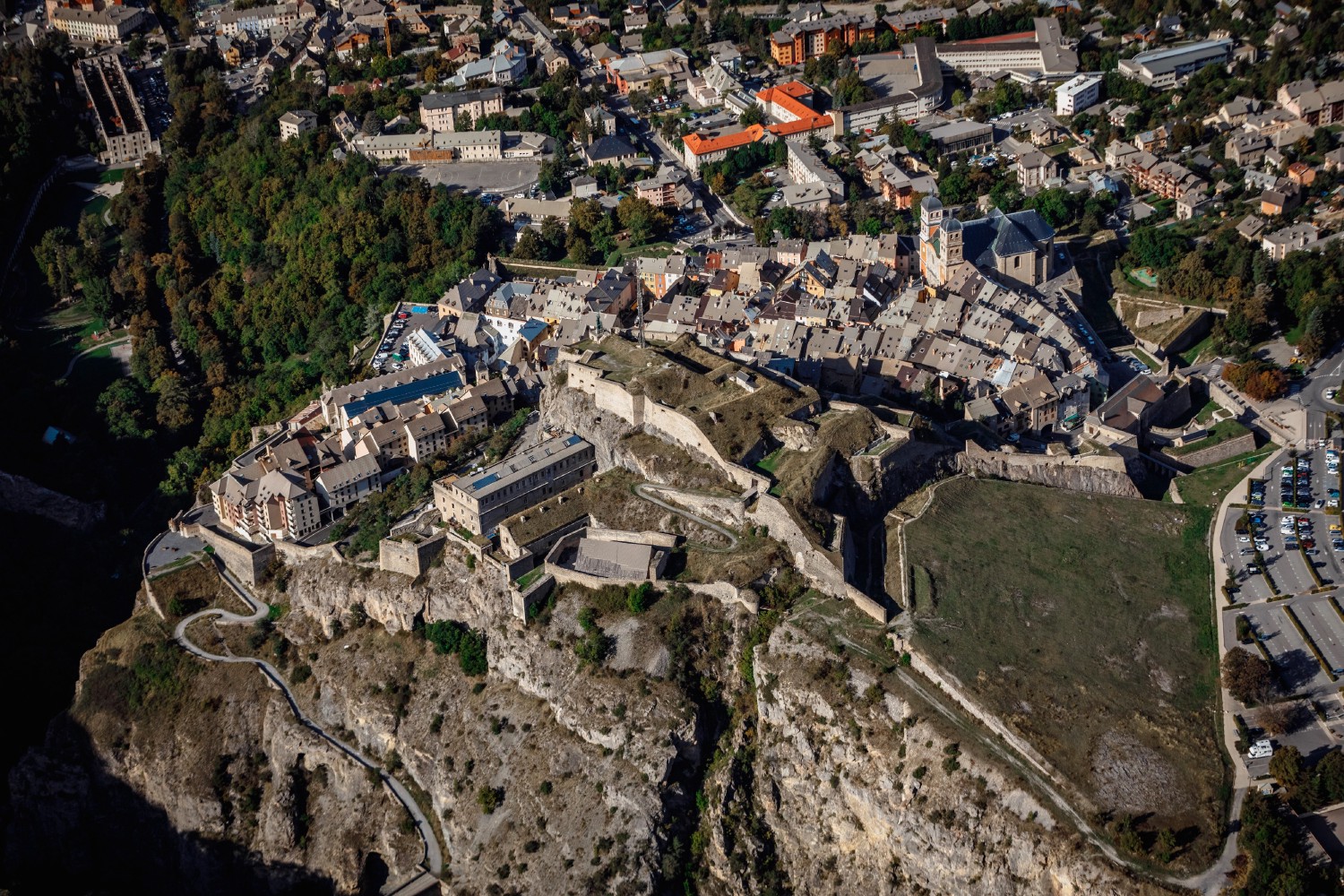Briançon in the Hautes-Alpes department is located 9.3 mi (15 km) from the Italian border at the crossroads of the catchment areas of no less than five rivers or torrents: the Durance, the Clarée, the Guisane, the Cerveyrette, and the Orceyrette. The site's characteristics determined the constraints and conditions of urbanization of the upper and lower towns. The lower town extends in the trough valley of the Guisane dug by the great glacier descending from the Lautaret pass. As for the upper town, it was built on a glacial lock born from the confluence of the glacier with a small shallower glacier coming from the Montgenèvre pass.