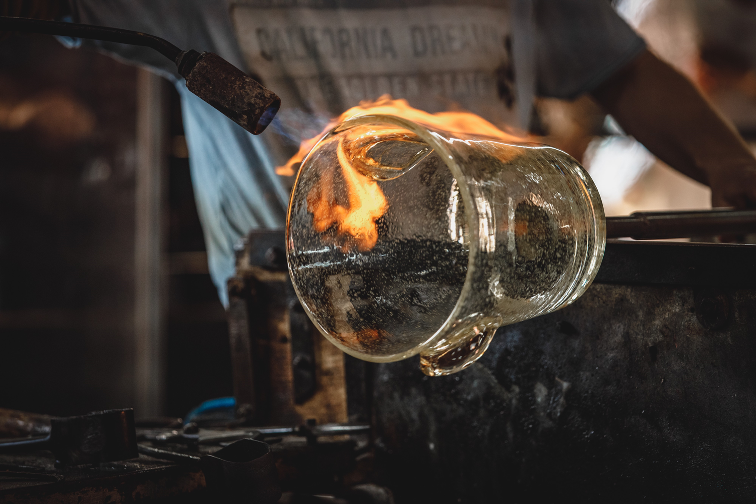 The torch is used in glassmaking to work and sculpt shapes and decorations in the glass made malleable by the action of the flame. The torch temperature is adapted to the glass used: lead crystal, soda-lime glass, or borosilicate glass. When the glass begins to melt, the master glassmaker stretches it, turns it, massages it, and spins it until giving it the desired shape. The torch also serves to solder the glass and add material.