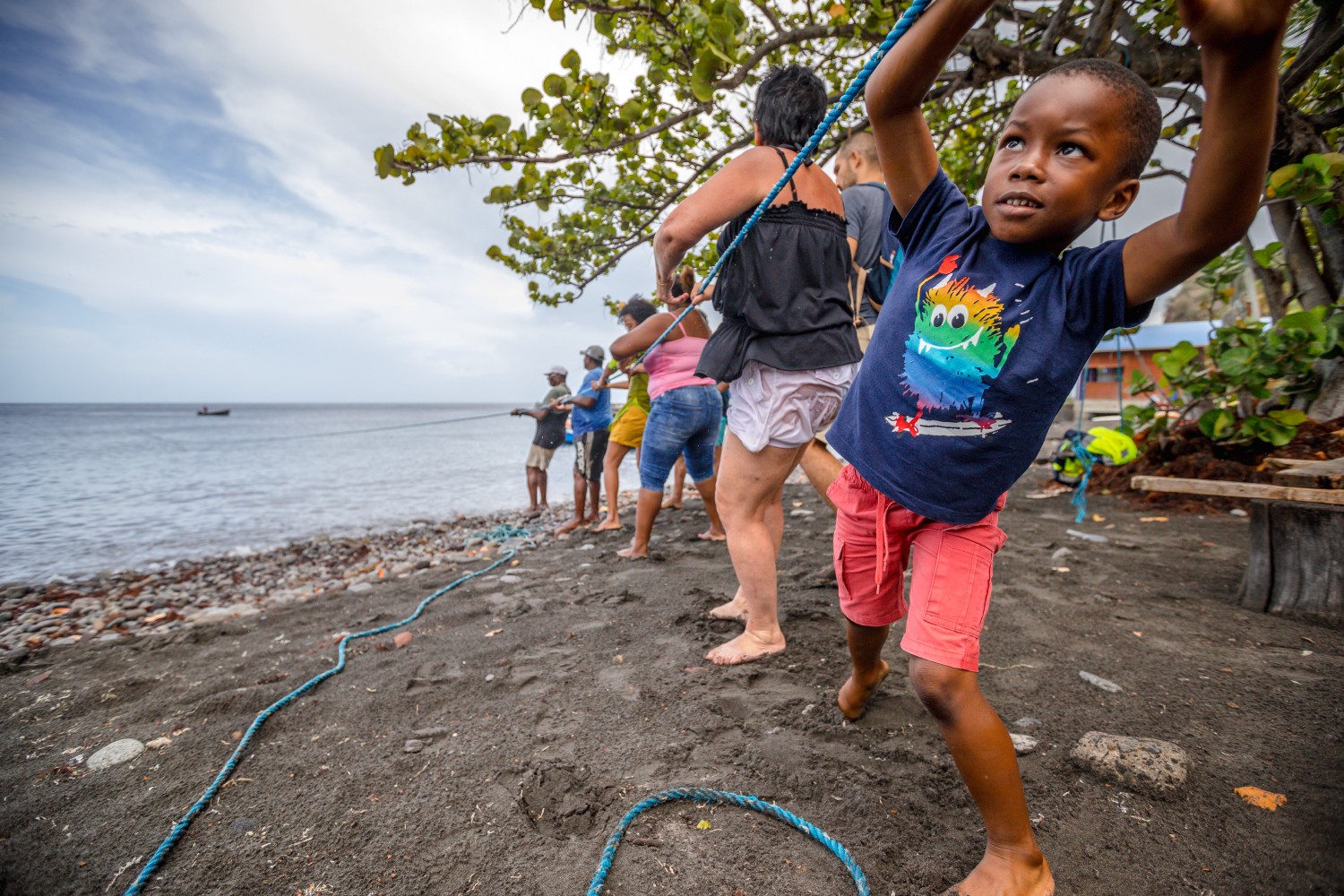 Always ready to lend a hand to the seine fishermen to pull the nets on the beach, the people of Martinique are among the biggest consumers of fish in the world with 107 pounds (48.7 kg) per inhabitant and per year. The depletion of resources, the difficult meteorological conditions linked to the swells, and the artisanal nature of the fishing structures do not, however, make it possible to ensure a regular and sufficient local supply to meet the demand. Fish are thus imported from Venezuela and the southern islands, and aquaculture allows a marginal production of Caribbean sea bass.