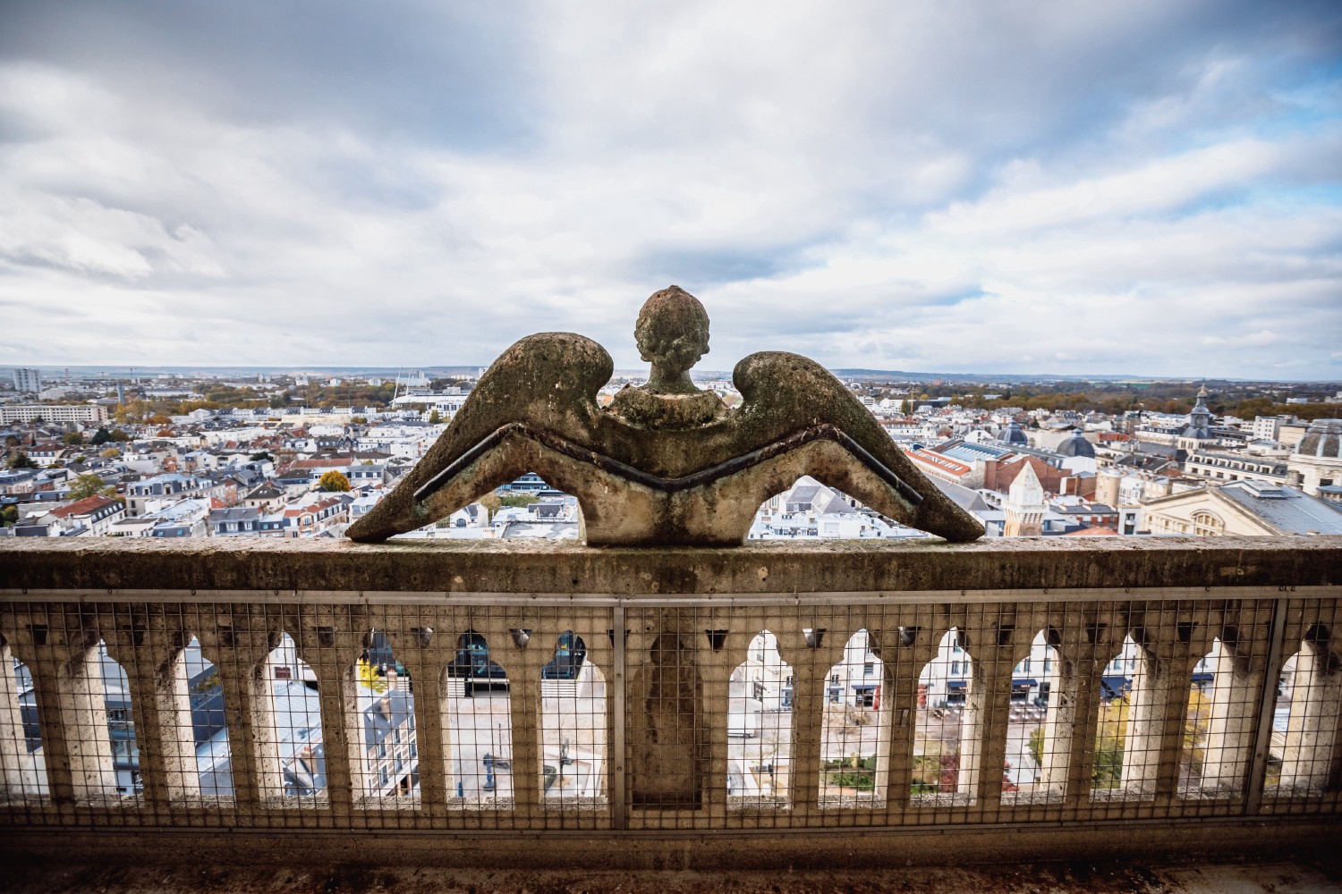 Reims Cathedral marks the height of classical Gothic (1180-1230). The first birth of the monument dates back to 1211. It succeeded five other older cathedrals, all located in the same place. Some 2,303 statues of angels, saints, kings, beggars, and creatures adorn the facades of the cathedral. A statue of a smiling angel stands near the north entrance, and another also depicts the Virgin Mary smiling at her child. Reims Cathedral is the first to display smiling figures, a particularity that constitutes a turning point in Christian iconography.
