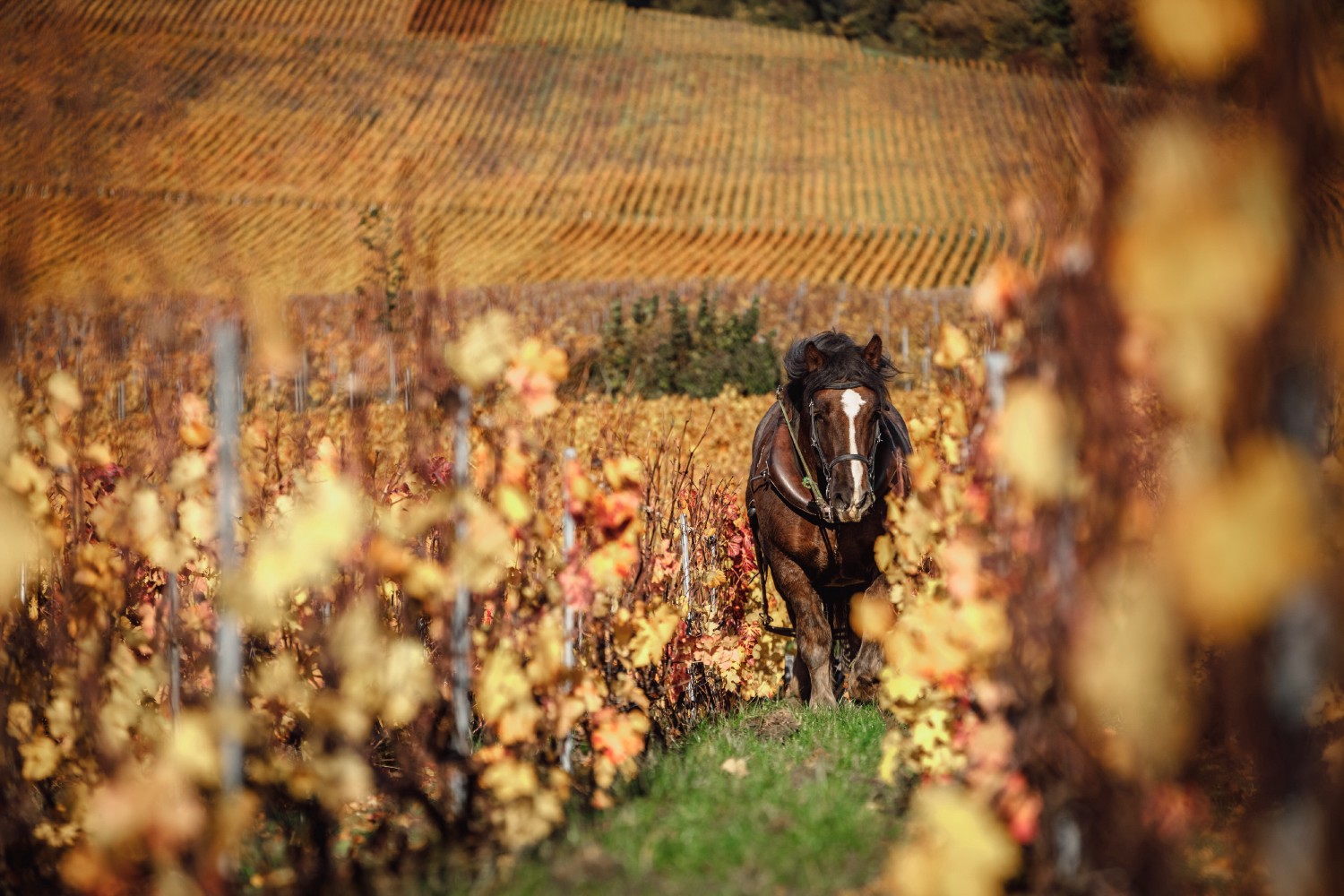 ‘Décavaillonnage’ consists of ploughing the soil between the rows of vines. The plough turns over the soil at the foot of the vines in order to eliminate weeds at the end of the winter; indeed, their presence tends to facilitate spring frosts and prevent a good state of health. But it is a delicate task to carry out, as there is a risk of damaging the vine. Precisely, the horse feels the roots with its hooves and stops before pulling them out. In addition, unlike the wheels of a tractor, it does not walk in the same place all the time, which means that the soil is less compressed and more aerated.