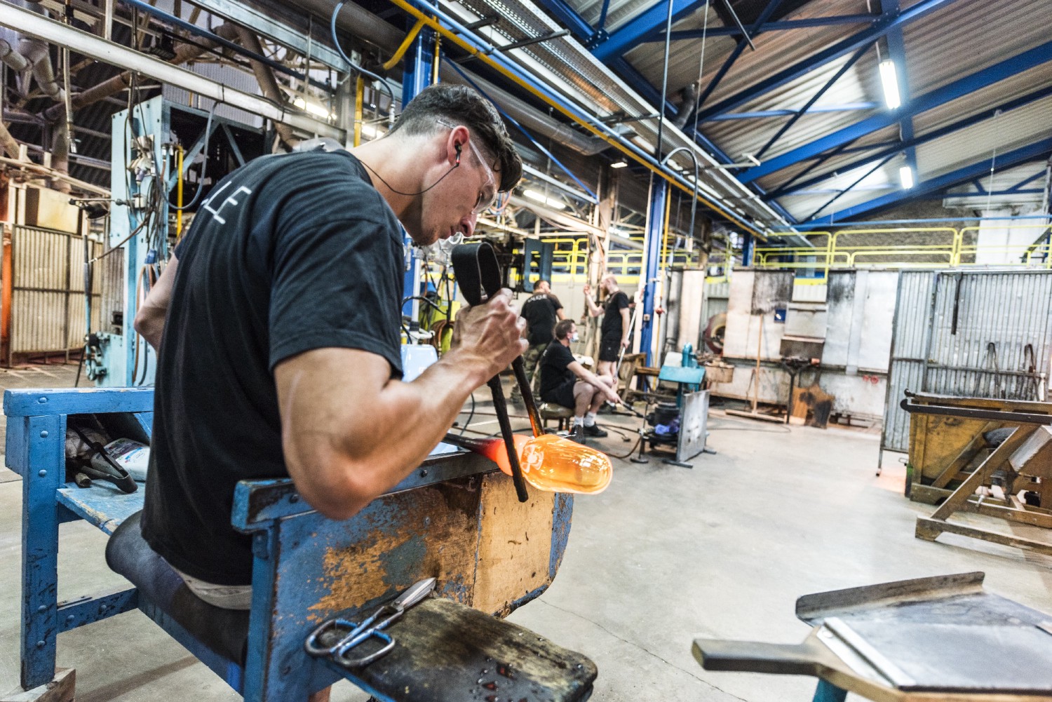 The process of glassmaking first requires collecting a mass of molten glass at the end of the cane. The craftsman then rotates its metal rod continuously to obtain a homogeneous element. He then alternates between blowing the glass, cooling it, reheating it in the oven, and adding more molten glass. Various pliers allow the glassmaker to give the mass the desired shape. Speed imperatives inherent to production on a larger scale do not exclude the use of this technique. It serves, among other things, for manufacturing precious and rare pieces, such as multi-layered glasses engraved with figurative scenes. The most famous work of this kind is the Barberini-Portland vase exposed at the British Museum.