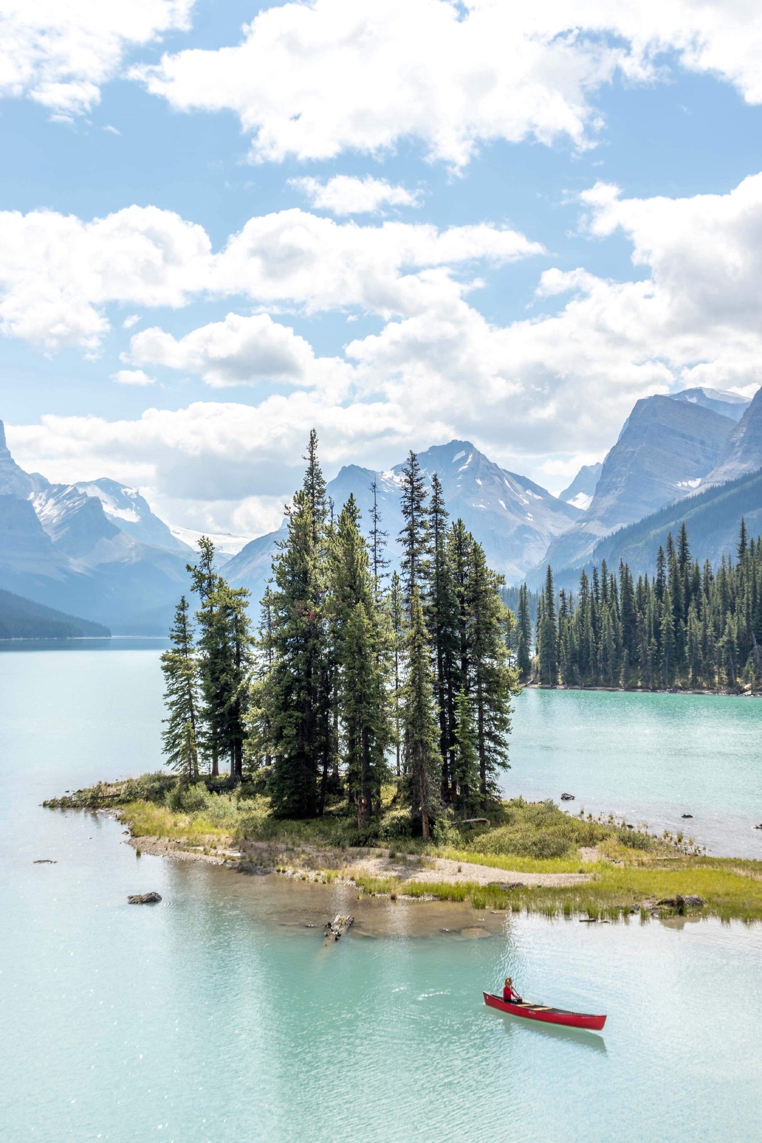 Reaching the iconic Spirit Island after 14 km paddling from the docks, nestled on the shores of Maligne Lake in Jasper National Park.