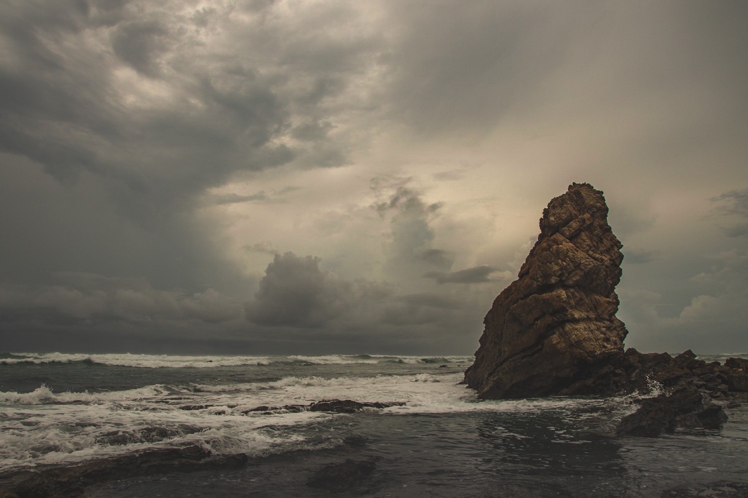 Costa Rica outcrop reaches into the ocean waiting for the storm to roll in.