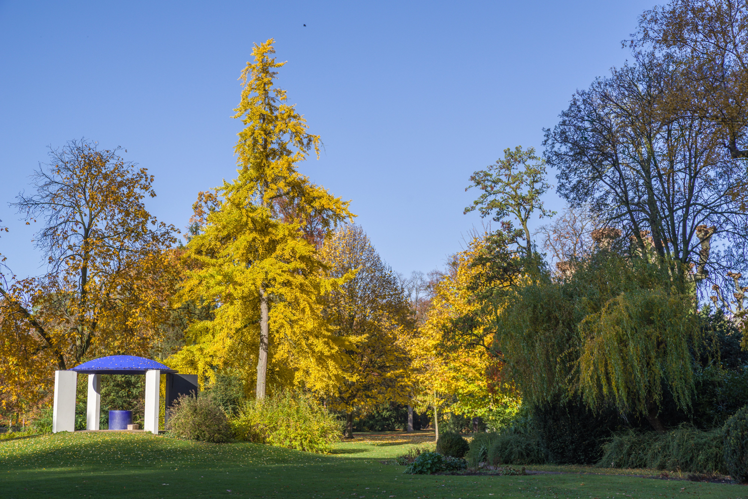 Le Puits voleur (Patrick Bailly-Maître-Grand, 1994) dans le parc de l'Orangerie en automne.
