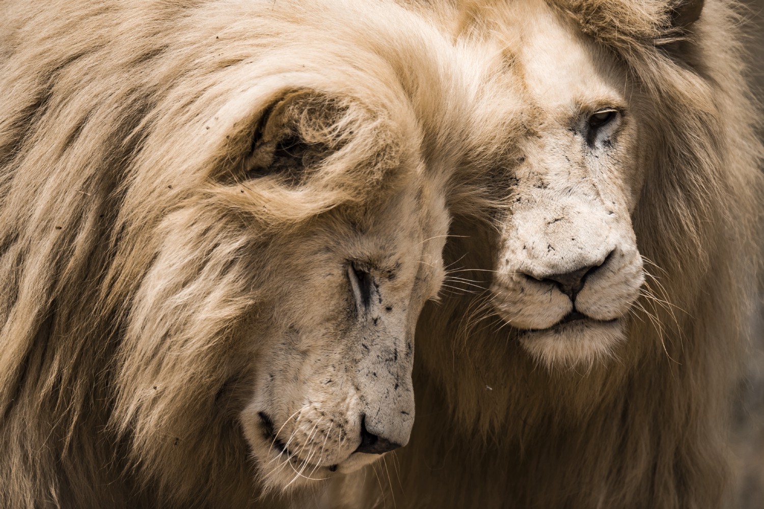 Lions are the only felines which live in groups on a continuous and voluntary basis. To greet each other and strengthen the links in the pride, the lions lick each other, put their tails on each other's back, or, more commonly, gently head poke each other.