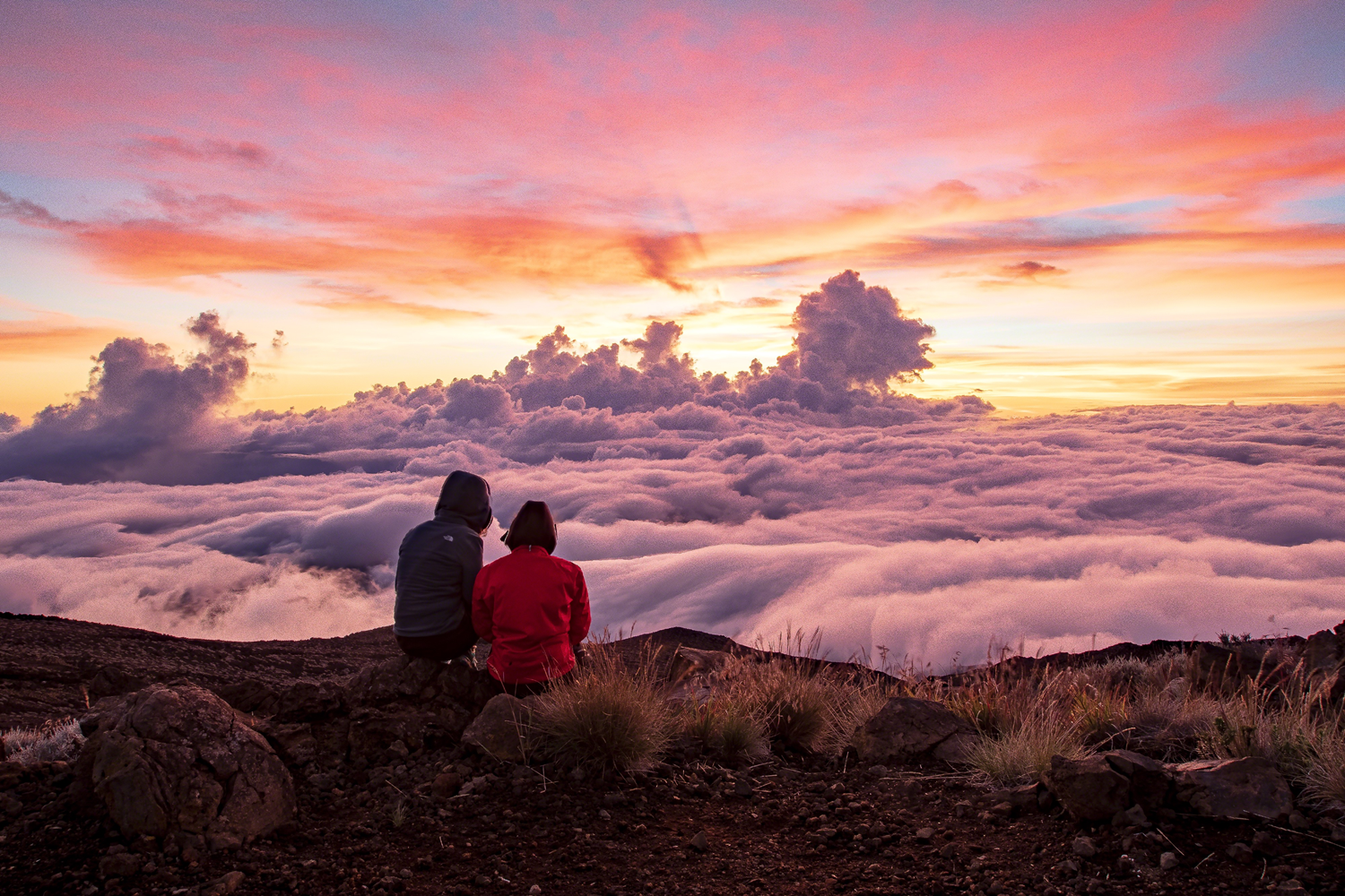 Lever du jour au piton des neiges île de la réunion au dessus d'une mer de nuages