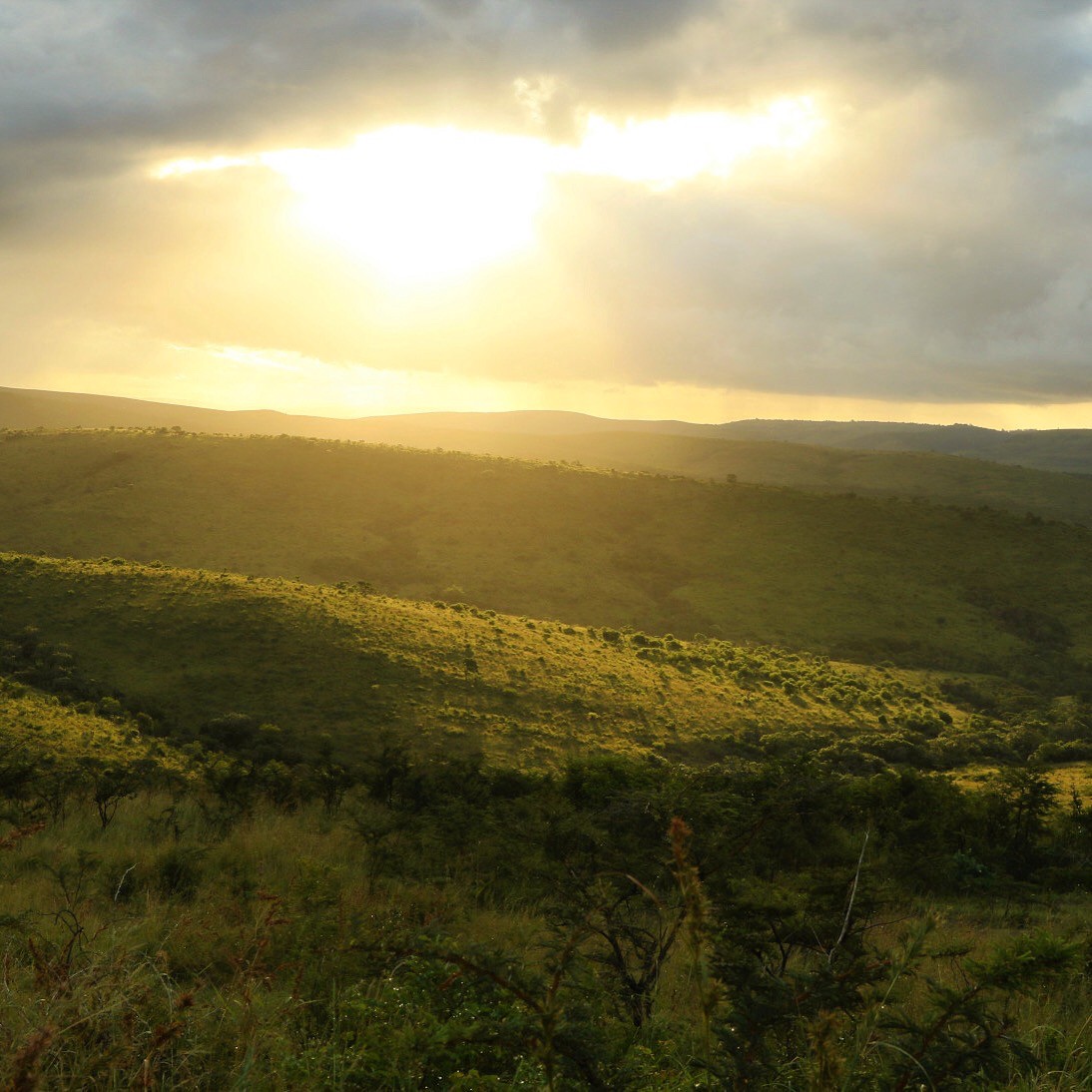 Hluhluwe iMfolozi, it’s South Africa’s oldest game reserve and apart from the big 5 and lots of other game, offers stunning views from its rolling hills. Especially at sunrise and at sunset like in this photo.