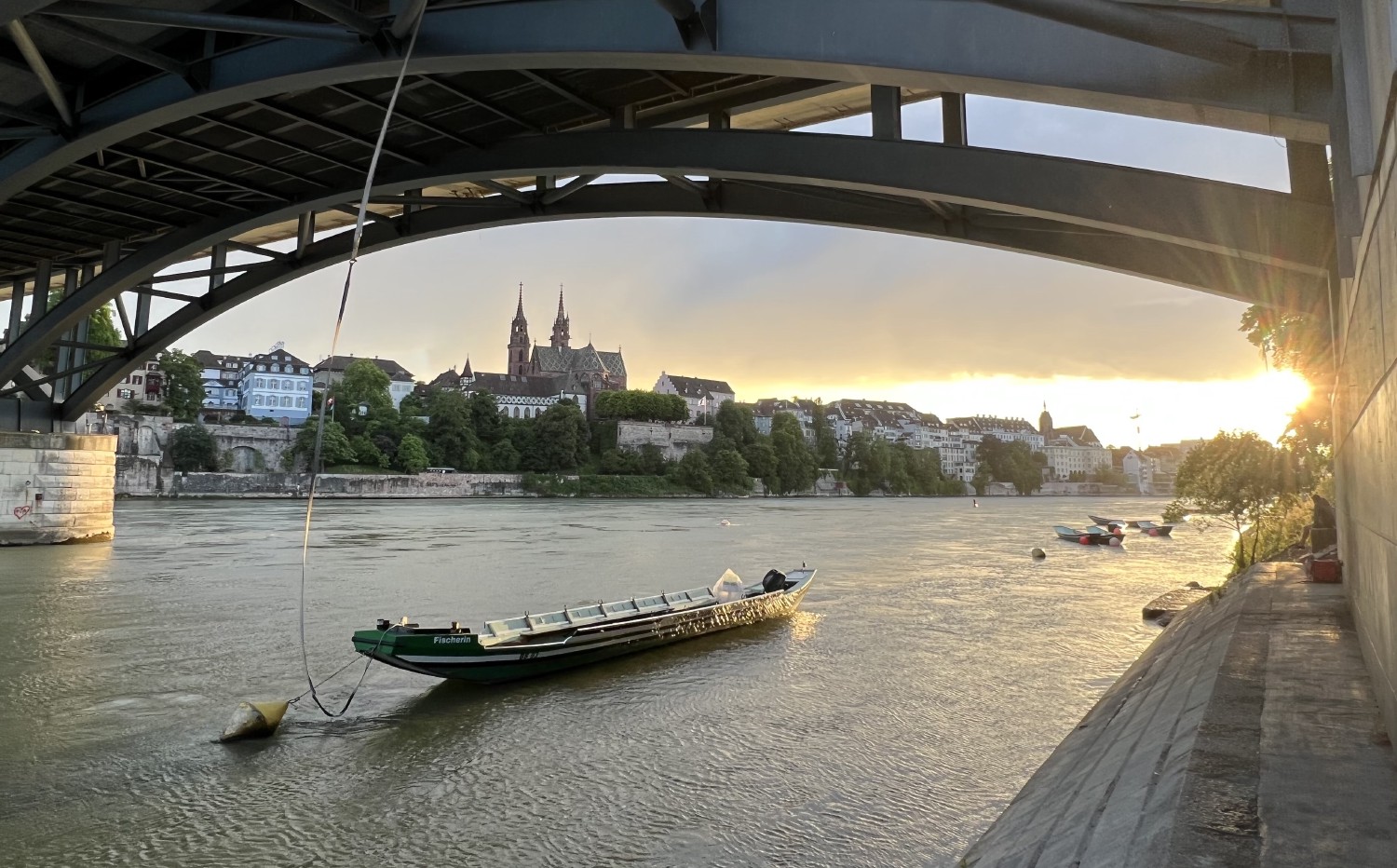 Sunset under the Wettsteinbrücke in Basel