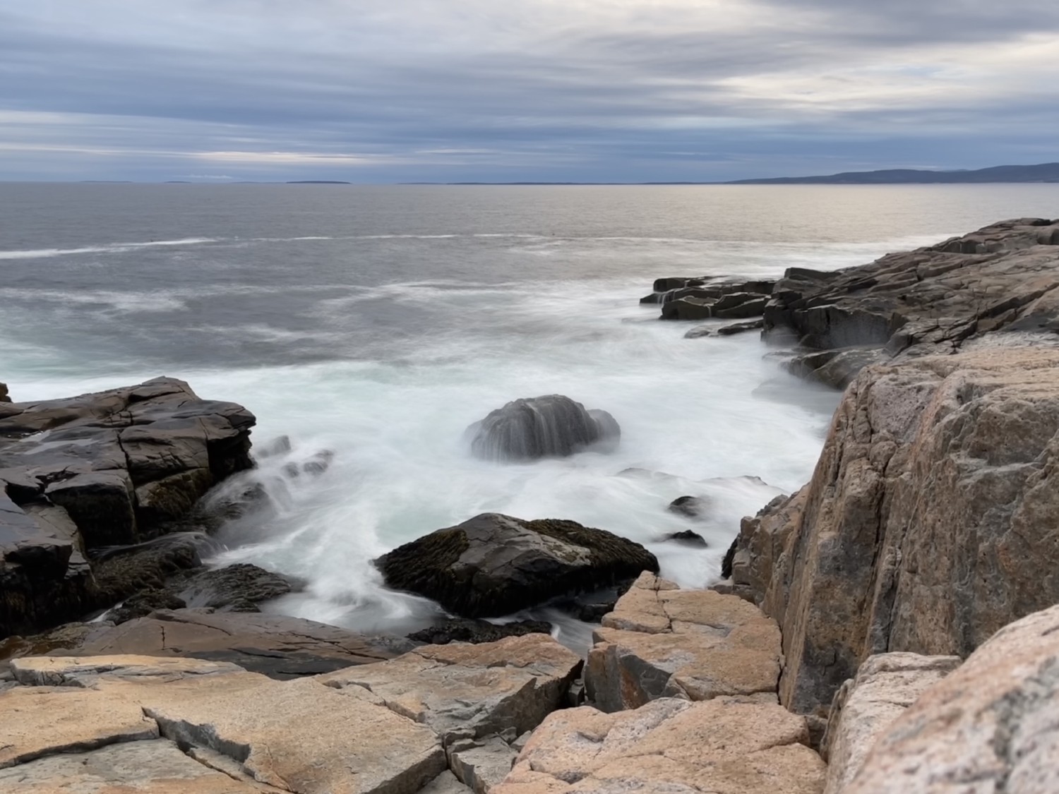 Waves wash over the rocky coastline at Schoodic Point in Acadia National Park.