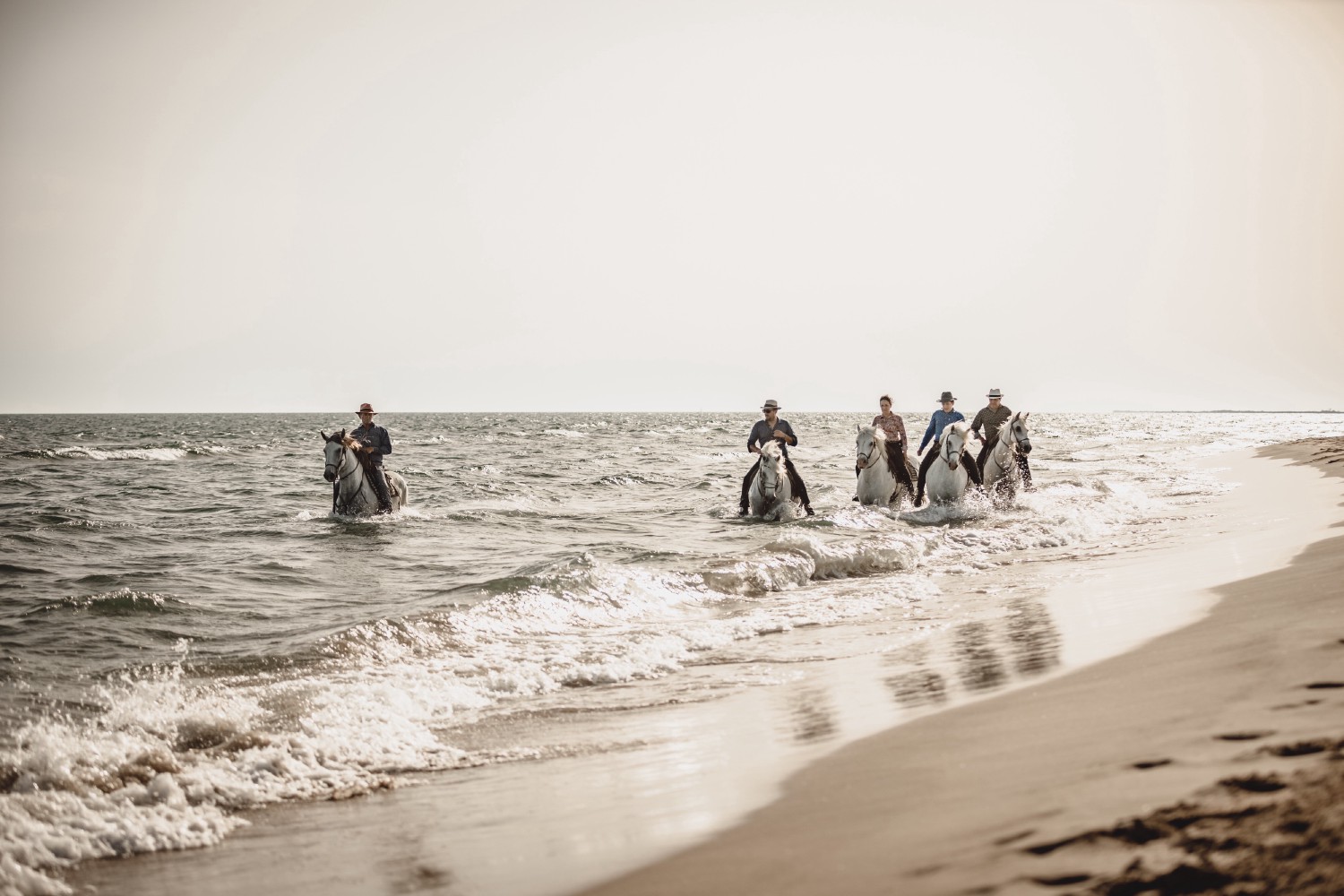 Camargue is a land of horses located in the only true French delta and the second in importance after the Nile among the four in the Mediterranean (Ebro and Pô). The region makes its 46 miles (75 km) of coastline available to the breeders wishing to ensure their horses the benefits of balneotherapy. Sea bathing is used for equine well-being solely or to resolve various equine health problems via treatment, rehabilitation, or recovery sessions.