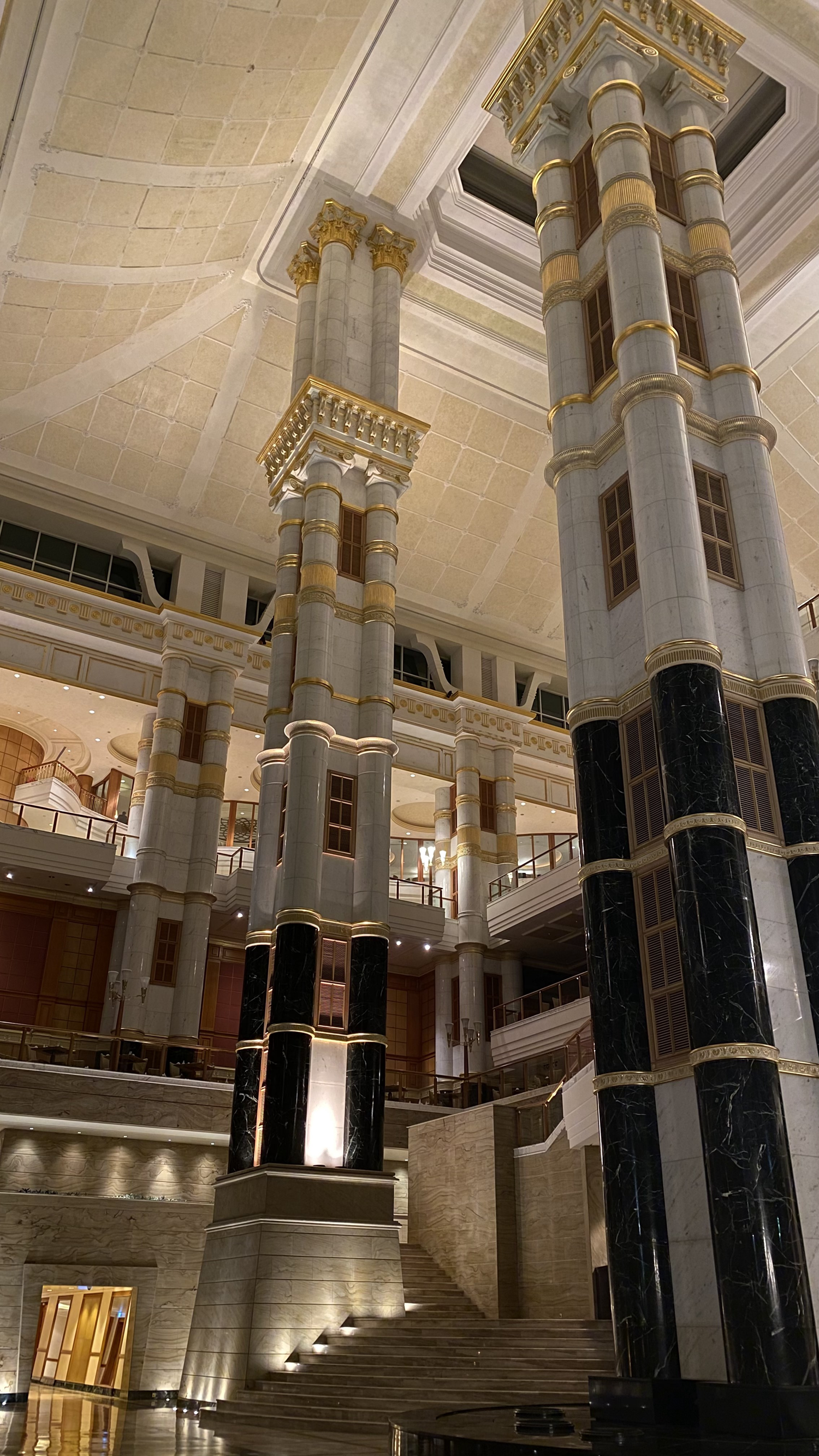 The towering marble and teak atrium of The Empire Brunei. So open, airy and cool. This photo was taken in the evening when it was dark.