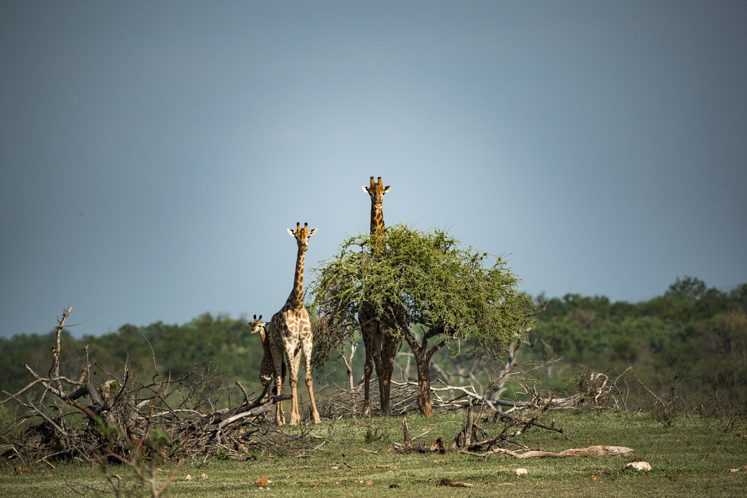 After a gestation of 15 months, the female giraffe gives birth to a calf that is able to stand within about 15 minutes and to run within one hour after its birth. It is already close to 6.7ft (2m) high. Between feeds, the mother hides the calf in order to eat and drink. After a few days, she joins other females with calves to form a nursery for protection in numbers.