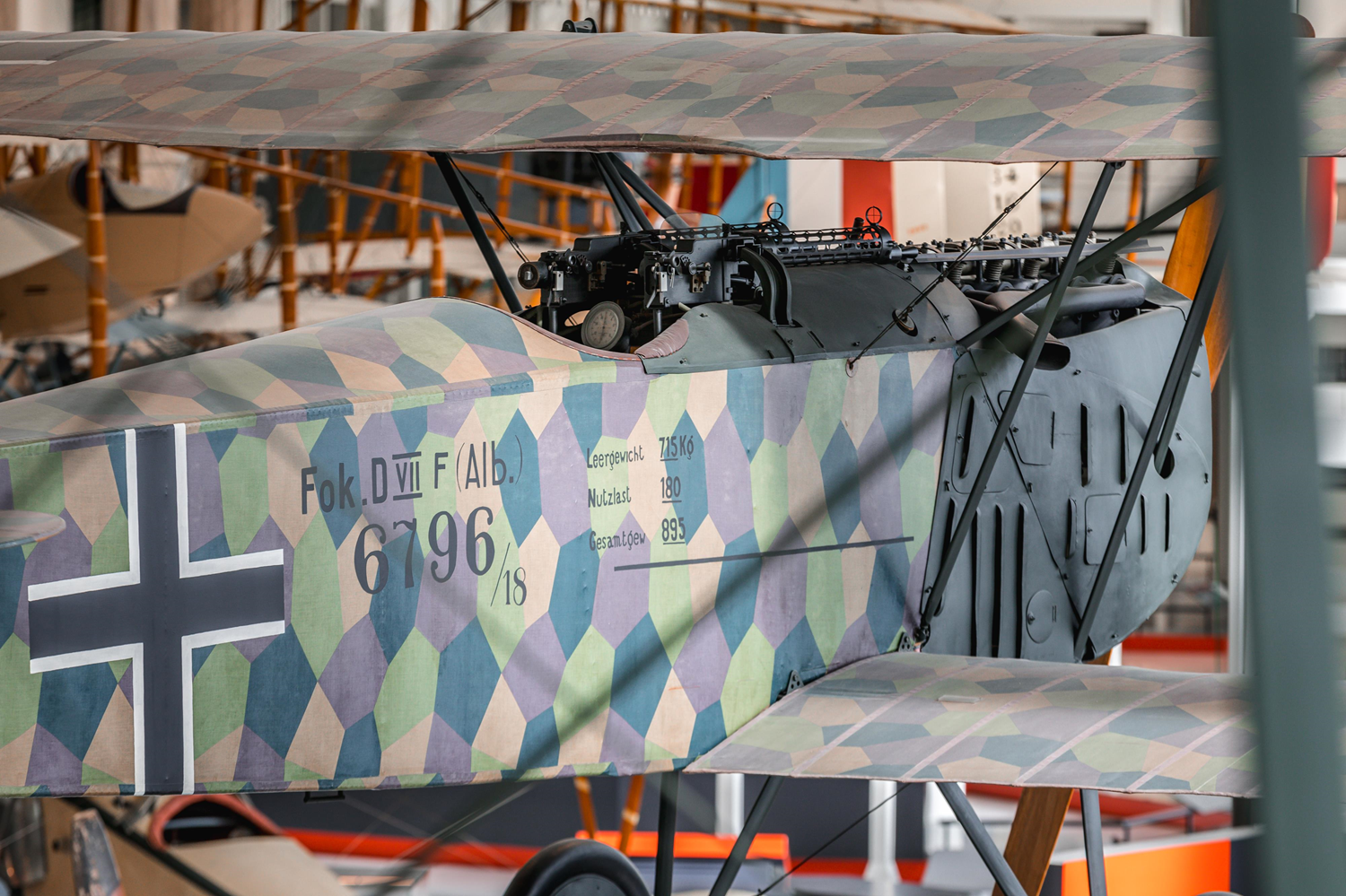 A formidable fighter aircraft designed by German Anthony Fokker during the First World War, the Fokker D.VII is a classic biplane with the N-bracing characteristic of Fokker aircraft. Its steel structure and wooden wings made of canvas like the fuselage made it an easy aircraft to build and repair. The particular shape of its wings allowed it to position itself under its enemies, nose up to the limit of the stall, and to fire with its two MG 08-15 7.92 mm machine guns into the unarmoured belly of the Allied reconnaissance aircraft. More than 3,000 of the Fokker D.VII were built.