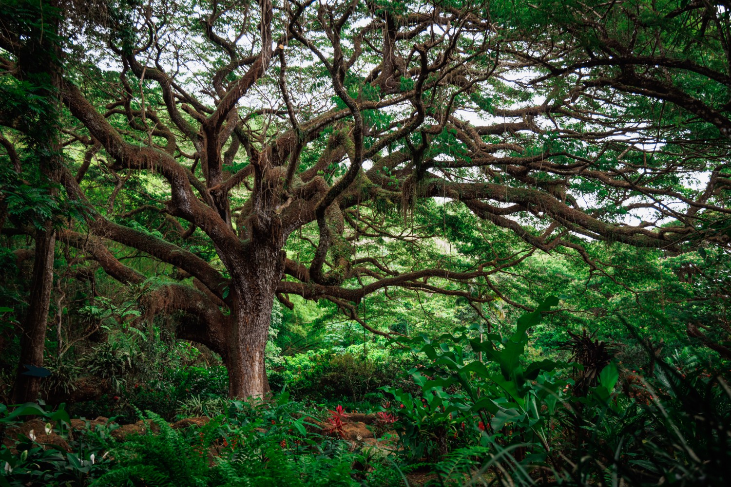 This Samanea Saman Minosaceae from Martinique from Habitation Ceron at Le Prêcheur was awarded the public prize for tree of the year in 2016, winning the national competition organized by the magazine Terre Sauvage and the Office National des Forêts (National Forestry Office). This tree, also called zamana, monkey-pod, rain tree, or black wood of Haiti, is at least three centuries old, as evidenced by its bark tiled like the shell of an old saurian. Planted at the beginning of the 18th century to shade coffee and cocoa plantations, it has survived all the cyclones as well as the volcanic eruption of Mount Pelée in 1902. Its trunk, more than 6.5 ft (2.50 m) in diameter, makes it the largest zamana in the Lesser Antilles. It takes at least ten people holding hands to walk around it. Some of its high branches are the size of a respectable tree trunk, about one foot (33 cm) in diameter.