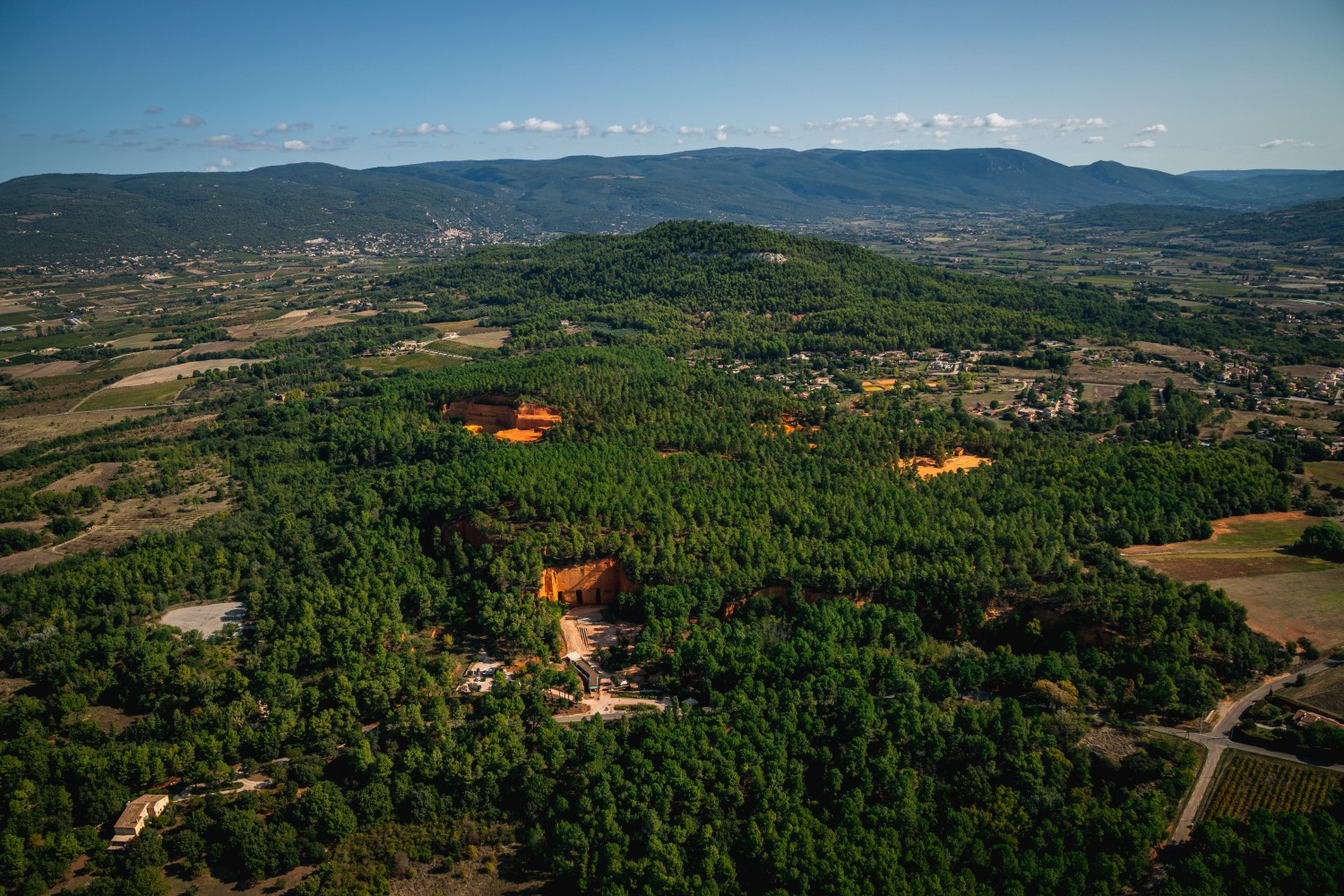 The Vaucluse ochre deposit stretches from Mormoiron to Apt, making it the most important in France and perhaps even in the world. It colors the landscapes of the Luberon massif and recalls the past ochre activity of the region, which had up to seventeen underground quarries and thirty-two open-air quarries. The production reached its peak in 1928, with 40,000 tons of ochre shipped 90% worldwide.