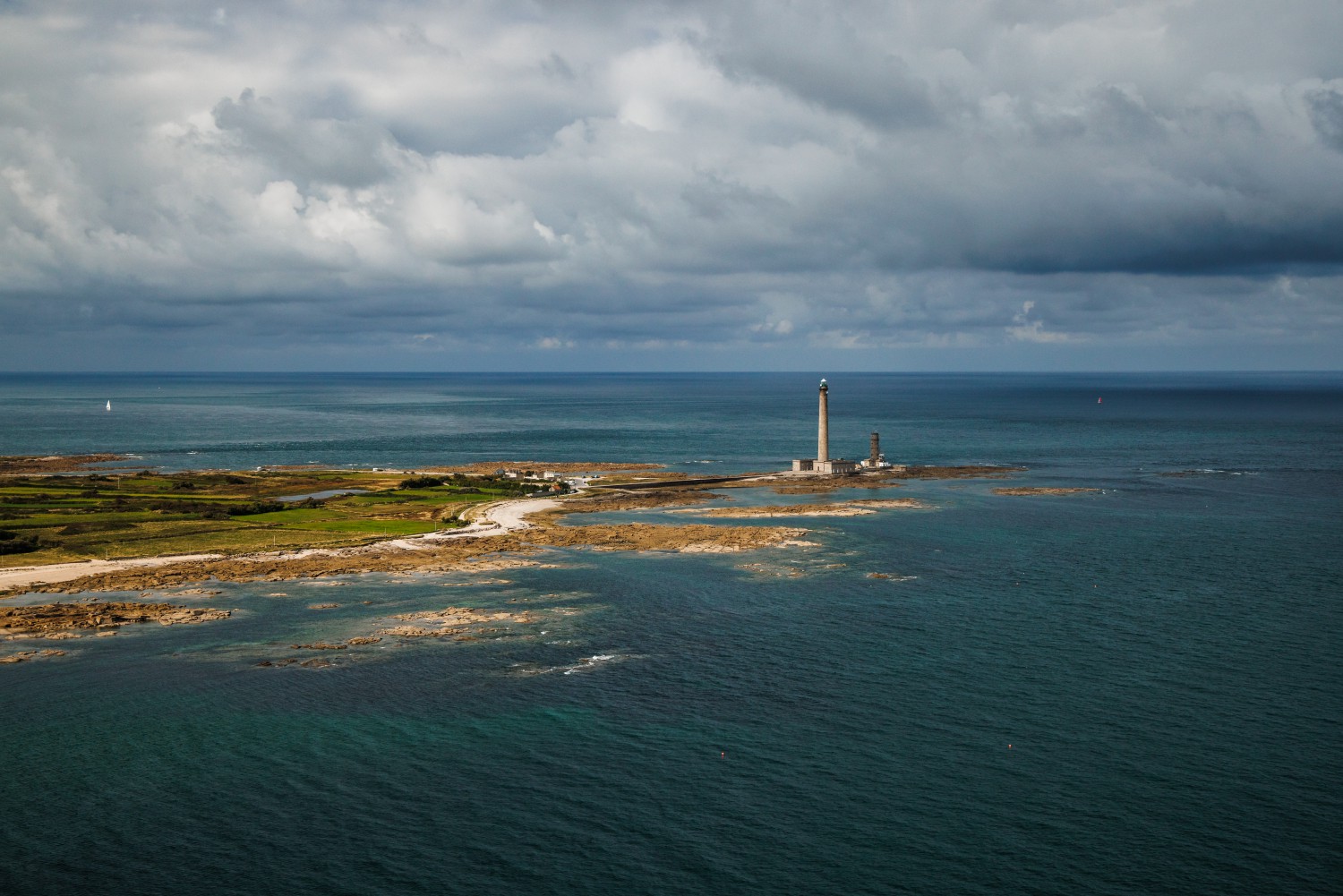 Pointe de Barfleur is at the north-eastern end of the Cotentin peninsula, while the Gatteville lighthouse indicates the north-western limit of the Baie de Seine. Offshore passes the Raz Blanchard, the strongest ocean current in Europe. Rocky bottoms cause eddies, and the formation of marmites (cylindrical cavities) makes navigation difficult even in good weather. Pink granite rocks show on the surface and make the landscape even wilder.