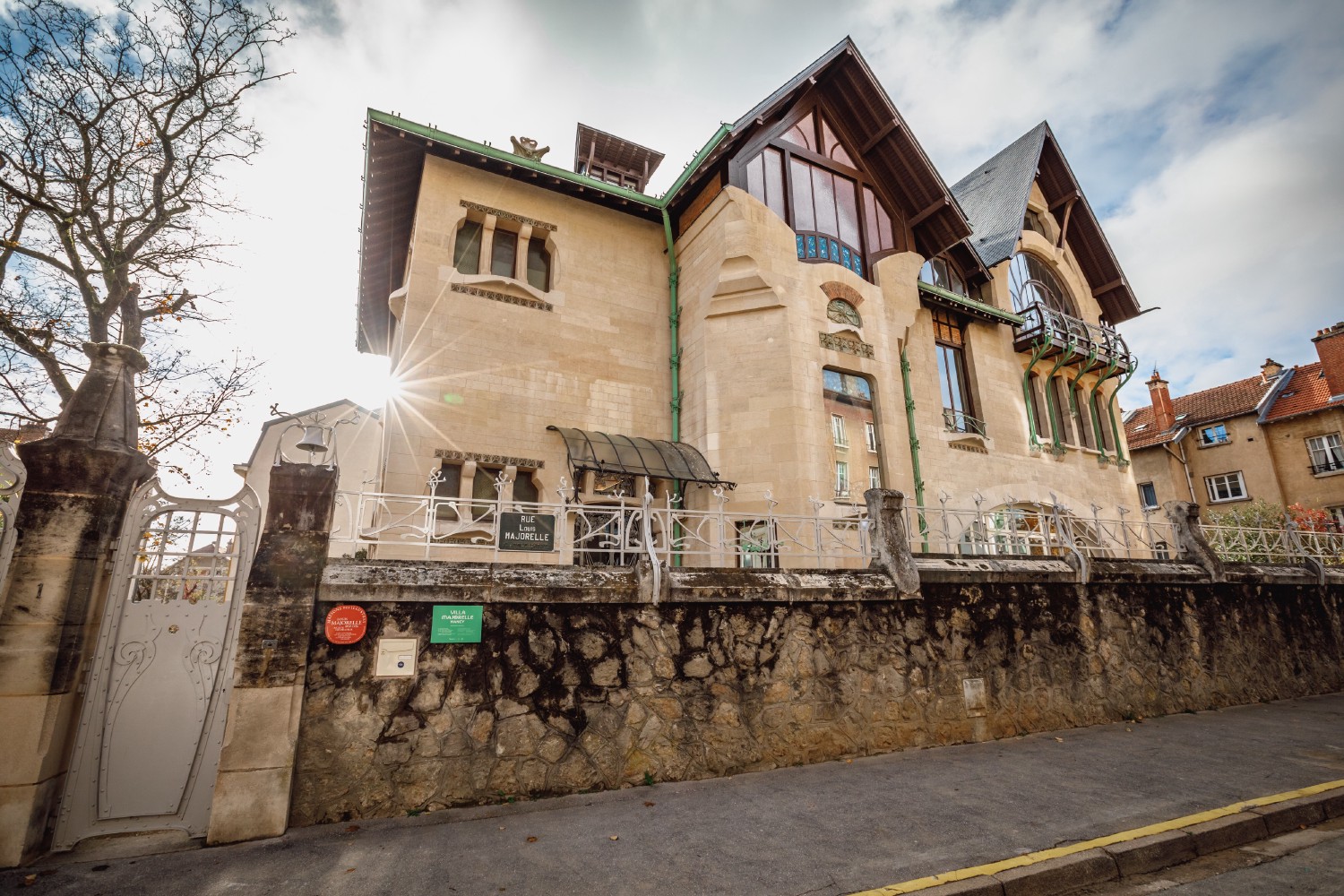 After collaborating in the decoration of the Café de Paris, Louis Majorelle asked a young architect, Henri Sauvage, to build him a house in Nancy. Baptized Villa Jika, from the initials of Jeanne Kretz, the wife of Majorelle, the villa was constructed between 1901 and 1902. Its north facade, consisting of three parts, is the main entrance to the interiors. The front door on the left is used for the service. In the center, large windows surmount the ivy staircase. On the right side of the facade is Louis Majorelle's studio.