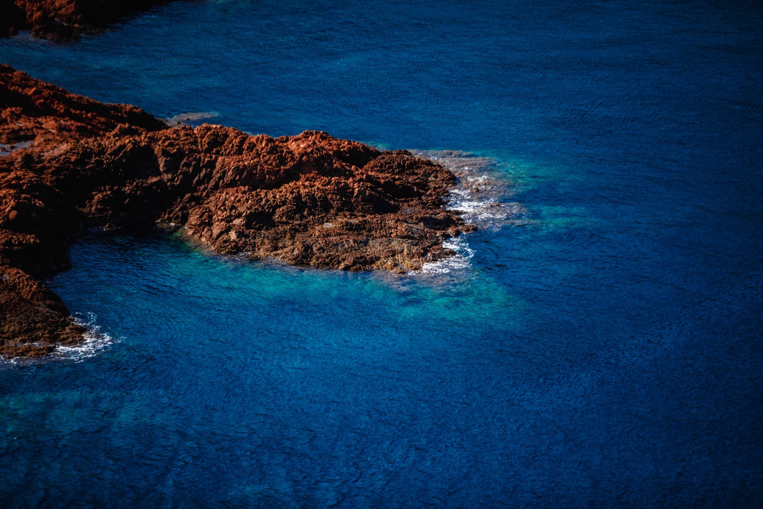 Rhyolite, reddened by the presence of hematite in its structure, is the most representative rock of the Estérel massif. Among its different varieties, the most common is the ignimbritic rhyolite or amaranth porphyry from Estérel, rich in quartz phenocrysts and potassium feldspars. At the base of Mont Vinaigre, one encounters piperno rhyolitic characterized by the presence of flames, viscous fallouts welded to the heap of the ejecta embedded in the mass of the rhyolite. At its top, fluidal rhyolites, or pyromerides, display undulations linked to the lava flow.