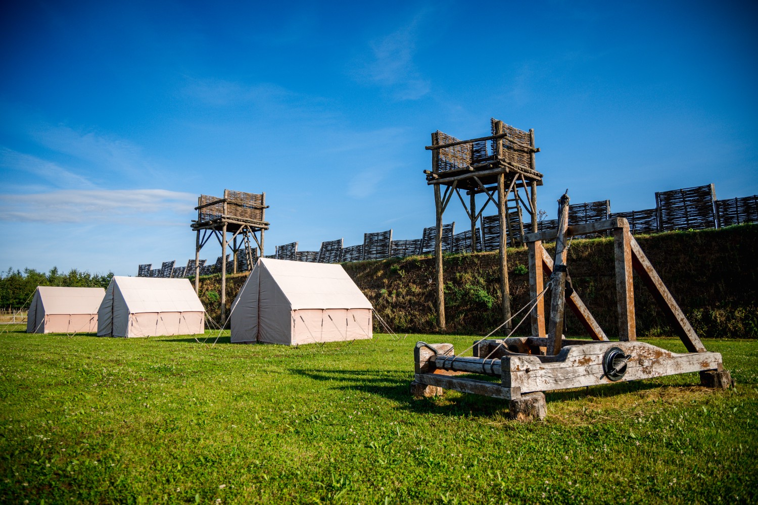 During the summer of 52 BC, following the fights that opposed him to the Roman legions during their withdrawal towards the Roman province of southern Gaul, Vercingetorix decided to install his troops (80,000 men, according to Caesar) in the oppidum of Alesia in Burgundy. Caesar, at the head of ten to twelve Roman legions (40 to 45,000 men) supported by several thousand auxiliaries and German horsemen, then surrounded the Gauls with a double row of fortified lines preceded by a set of very elaborate traps and laid siege to the oppidum. After a first defeat, the horsemen of Vercingetorix left to seek reinforcements throughout Gaul. Meanwhile, the Roman fortifications grew and the Gallic troops starved. When the relief army of 240,000 infantry and 8,000 cavalry (according to Caesar) finally arrived, they were routed. Withdrawn into the oppidum, Vercingetorix finally chose to surrender to spare his men after a siege that had lasted an estimated one and a half or two months.