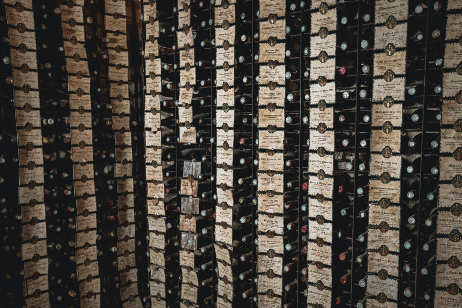 The Clos de Vougeot’s Oenothèque, in the castle's wine cellar, counts more than a hundred bottles. They are all marked with the seal of the Confrérie des Chevaliers du Tastevin, a guarantee of the quality of the Côte de Nuits wines produced in Burgundy. The labels mention the locality also called Climat. It is also noted whether there is a Grand cru or a Premier cru.