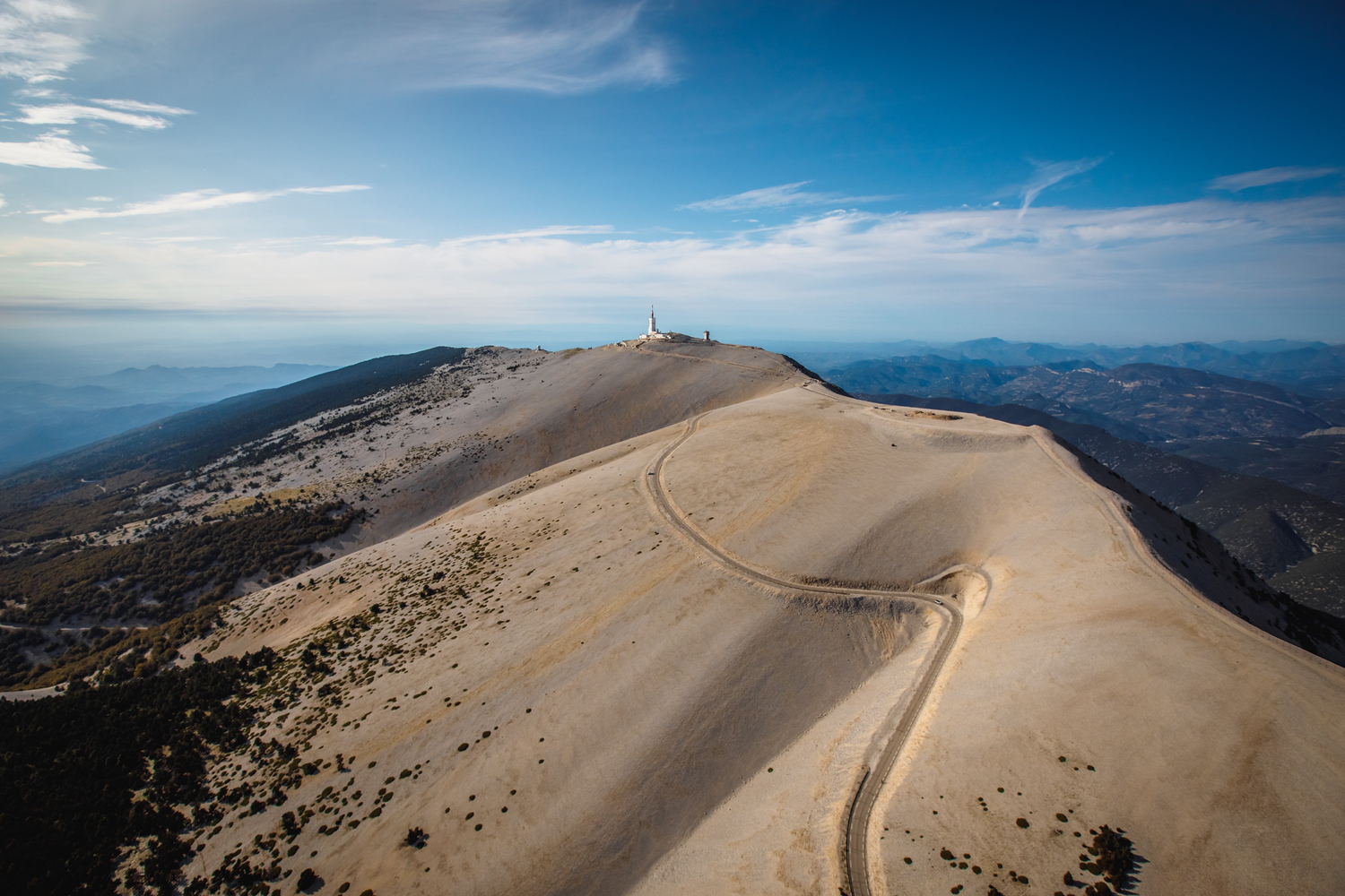 The summit of Mont Ventoux is accessible by three roads - departing from Bédoin, Malaucène, and Sault - well known to cycling enthusiasts. The most accessible route starts from Sault by the departmental road or Route du Ventouret with 3,608 ft (1,100 m) of elevation gain and a slope of only 3.5%. The legendary ascent of the Tour de France starts from Bédoin, in the south, and has 5,321 ft (1,622 m) of elevation gain. 13.4 miles (21.6 km) long with slopes oscillating between 7.4 and 10%, this so-called Route de l'Observatoire was inaugurated in 1882. As for the northern side from Malaucène, it offers an elevation gain of 5,036 ft (1,535 m) with a slope of 7.5% by the 13 miles (21 km) long Route du Mont Serein inaugurated in 1932.
