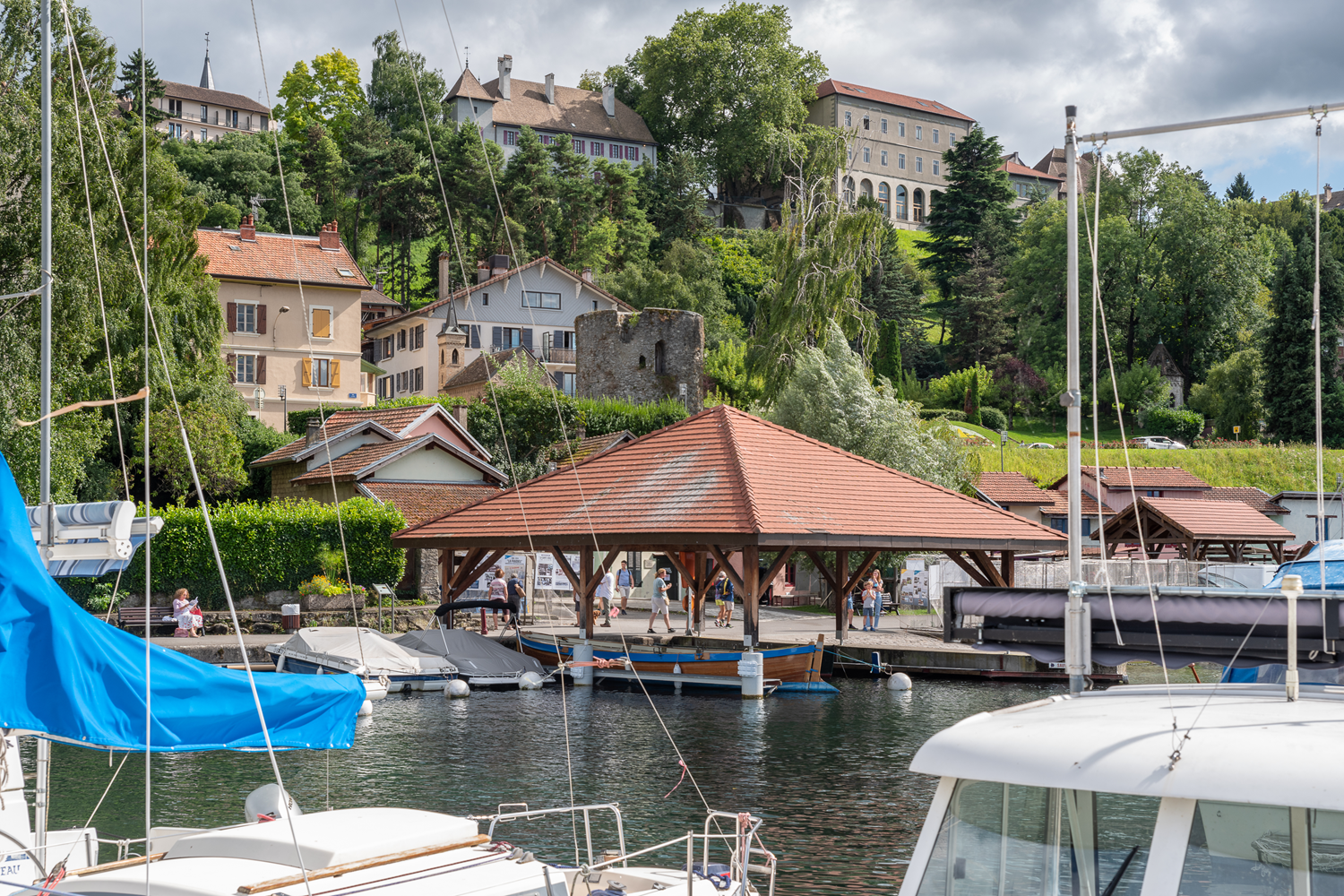 Le port de plaisance, la tour des Langues et la chapelle de Rives.