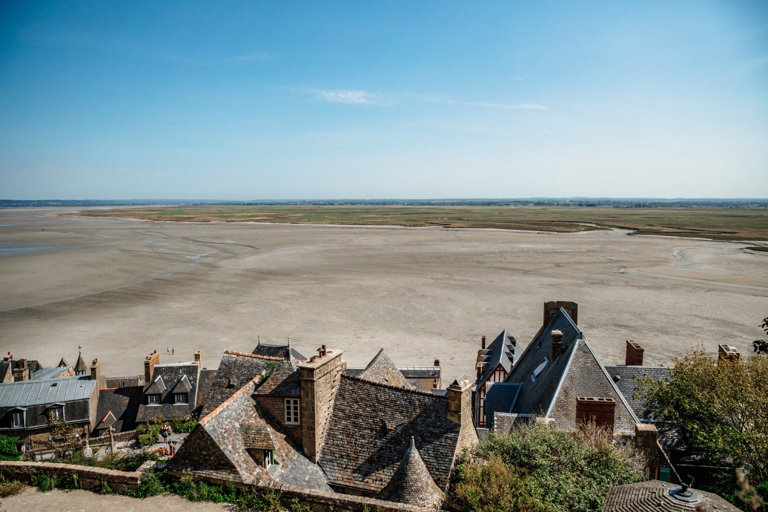 Once past the ‘Porte de l’Avancée’, situated at the entrance of the ramparts, begins the ‘Grande Rue’ (High Street), the only street in the village. This long ascending street winds around the rock and takes visitors to the foot of the great external step, a wide staircase of 100 steps that leads to the entrance of the abbey. In the village, most of the old houses have disappeared. Only a few stone or half-timbered houses from the 15th and 16th centuries remain untouched. However, in order to preserve the picturesque character of the village, many of the buildings have been rebuilt in the same, medieval style.