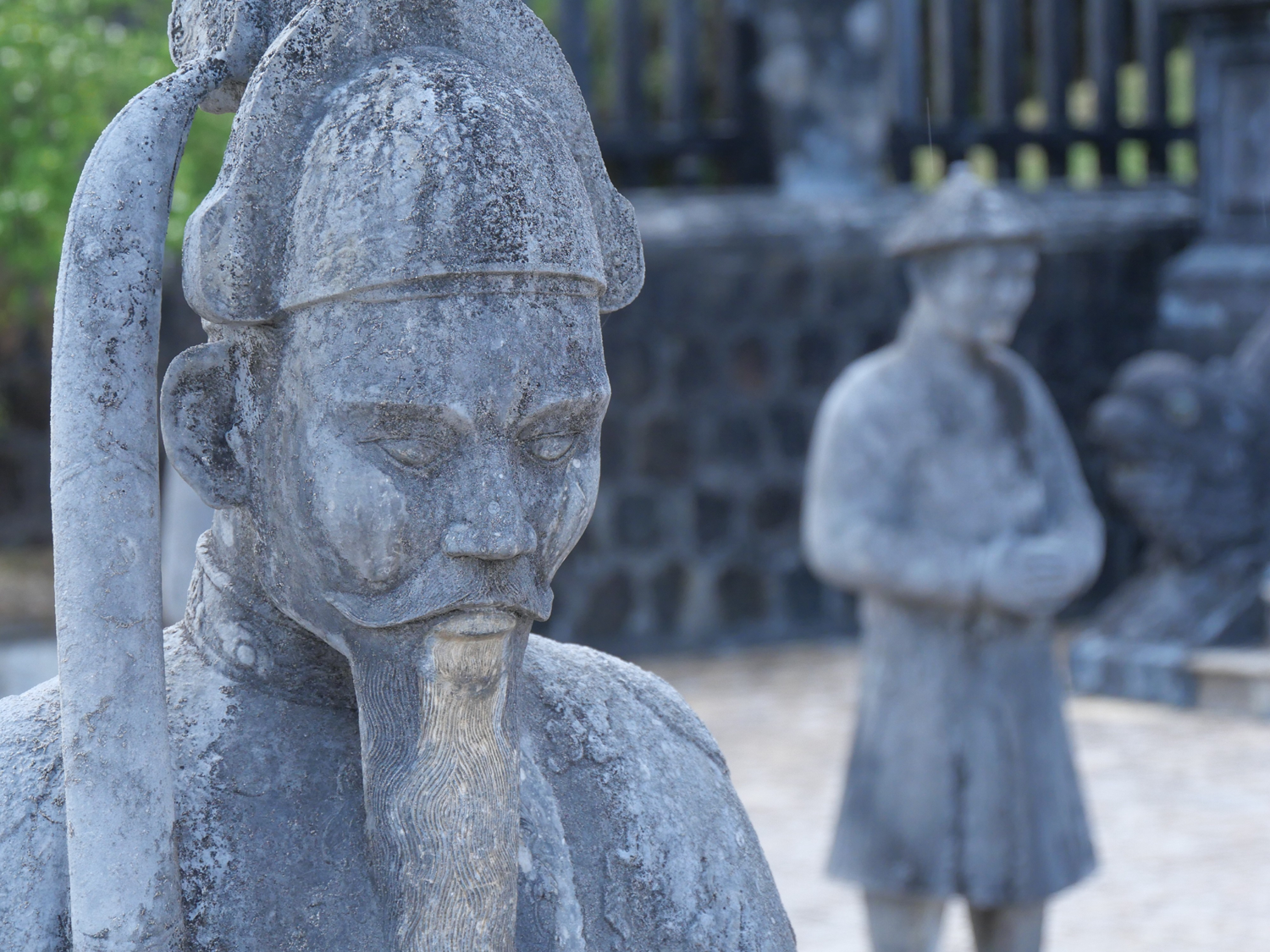Dans la ville de HUE de trouve les tombeaux des empereurs du vietnam. Chaque tombeaux sont gardé et protégé par des soldats en pierres ayant chacun un visage et vêtement unique.