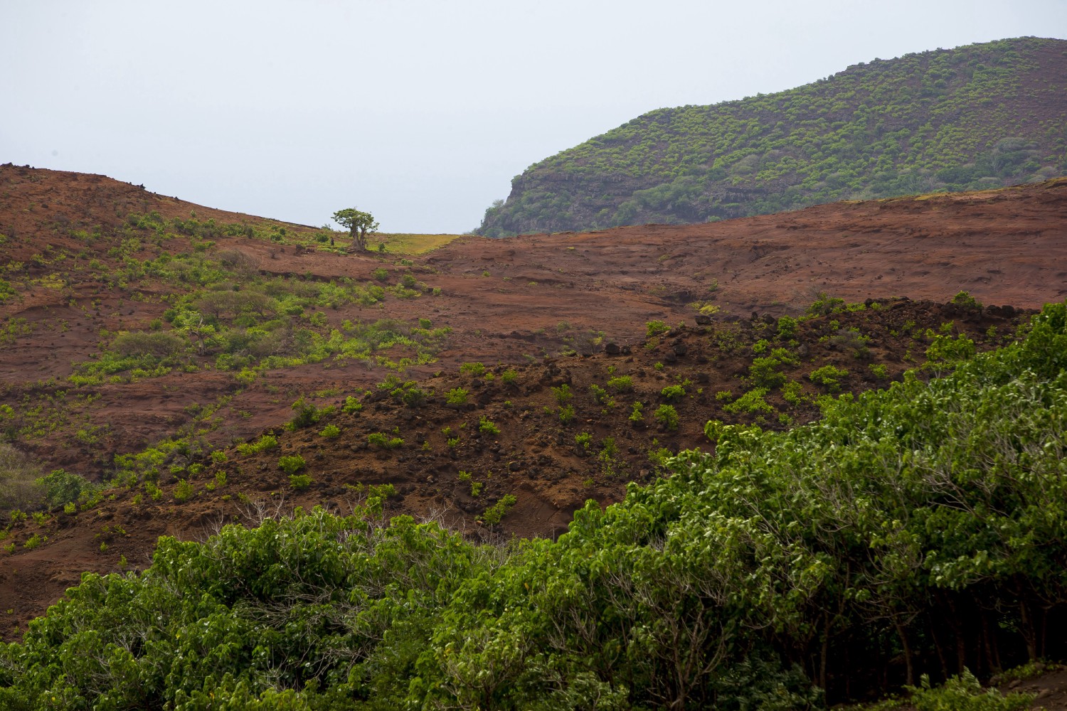 Eiao has a rugged topography. Its vegetation and soils have greatly suffered from the overgrazing of sheep. The island is now denuded on 50 to 60% of its surface and eroded by the frequent rains and violent winds. Geologically, the island is hollow and weakened by a huge underground water layer which saved it from the nuclear testings initially forecast there.