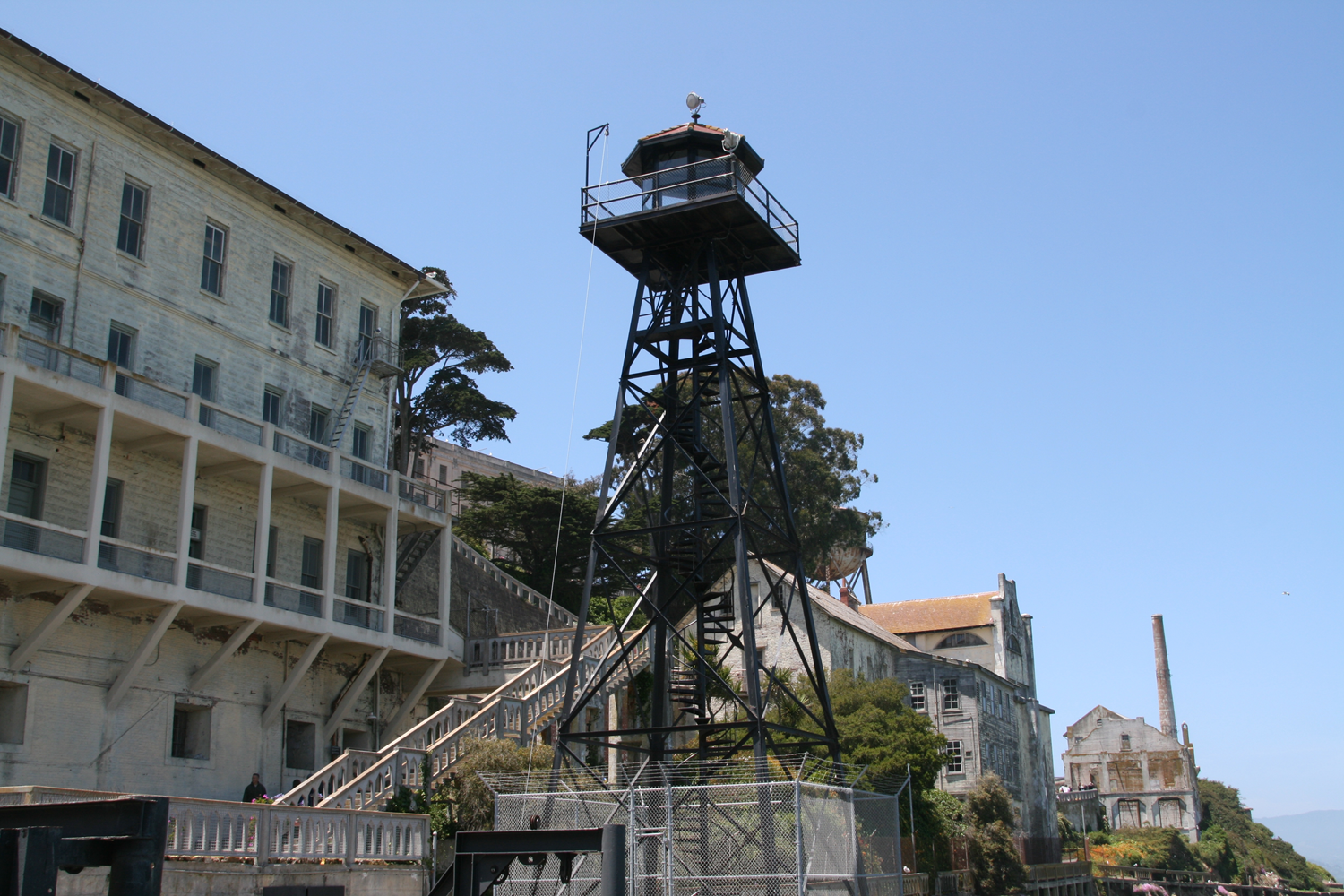 Elle domine le dock où accostent les bateaux sur ce petit îlot de roche au cœur de la baie de San Francisco.