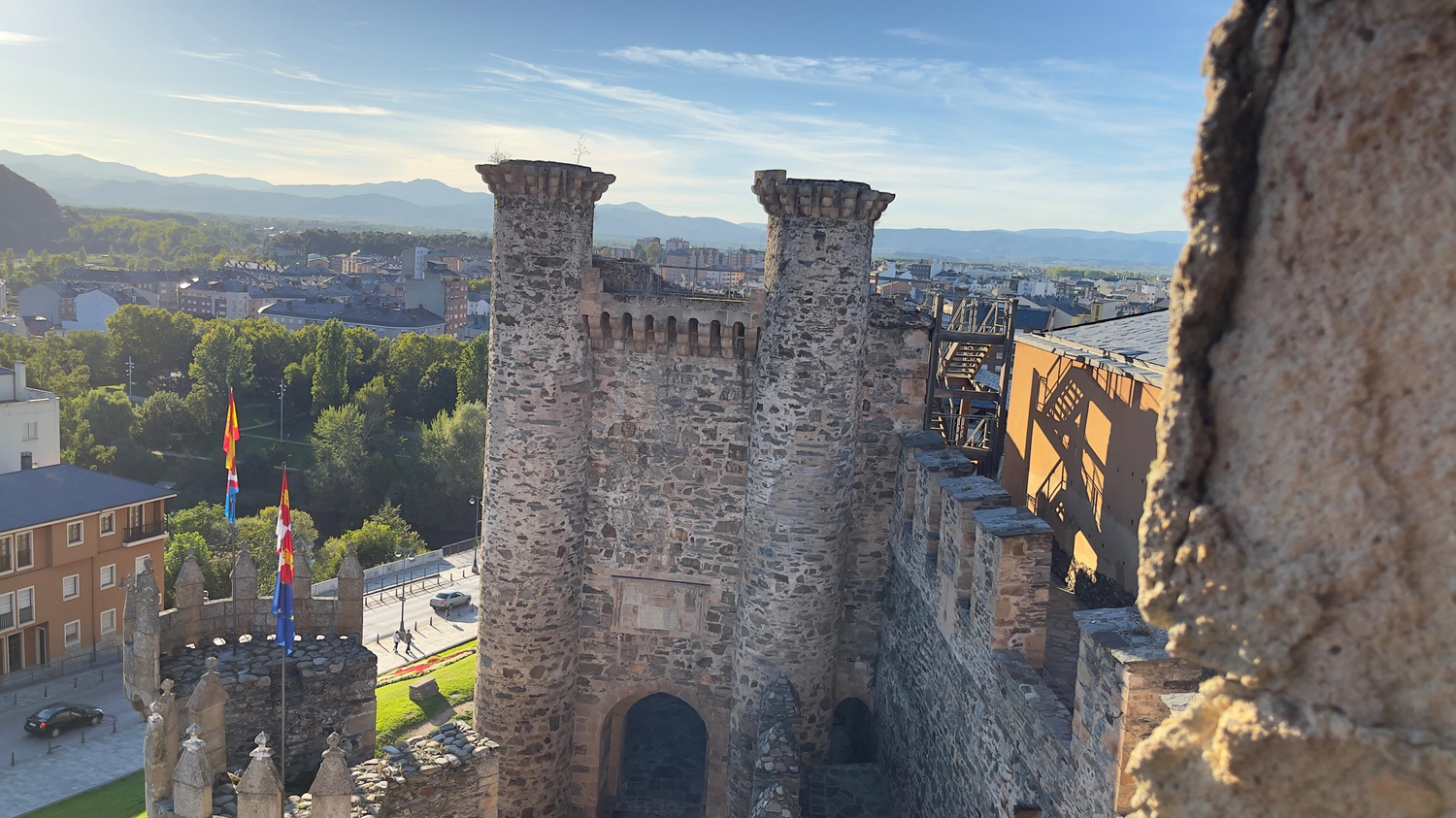 Ces tours de guet sont situées au-dessus de l’entrée principale du Château des Templiers de Ponferrada ( Castilla y León - España 🇪🇸 ) . Une tour de guet est un Edifice généralement plus haut que large conçu pour guetter, observer les alentours. Le fait d'être en hauteur permet en effet d'avoir une vue dégagée et donc de voir venir les dangers potentiels de plus loin.