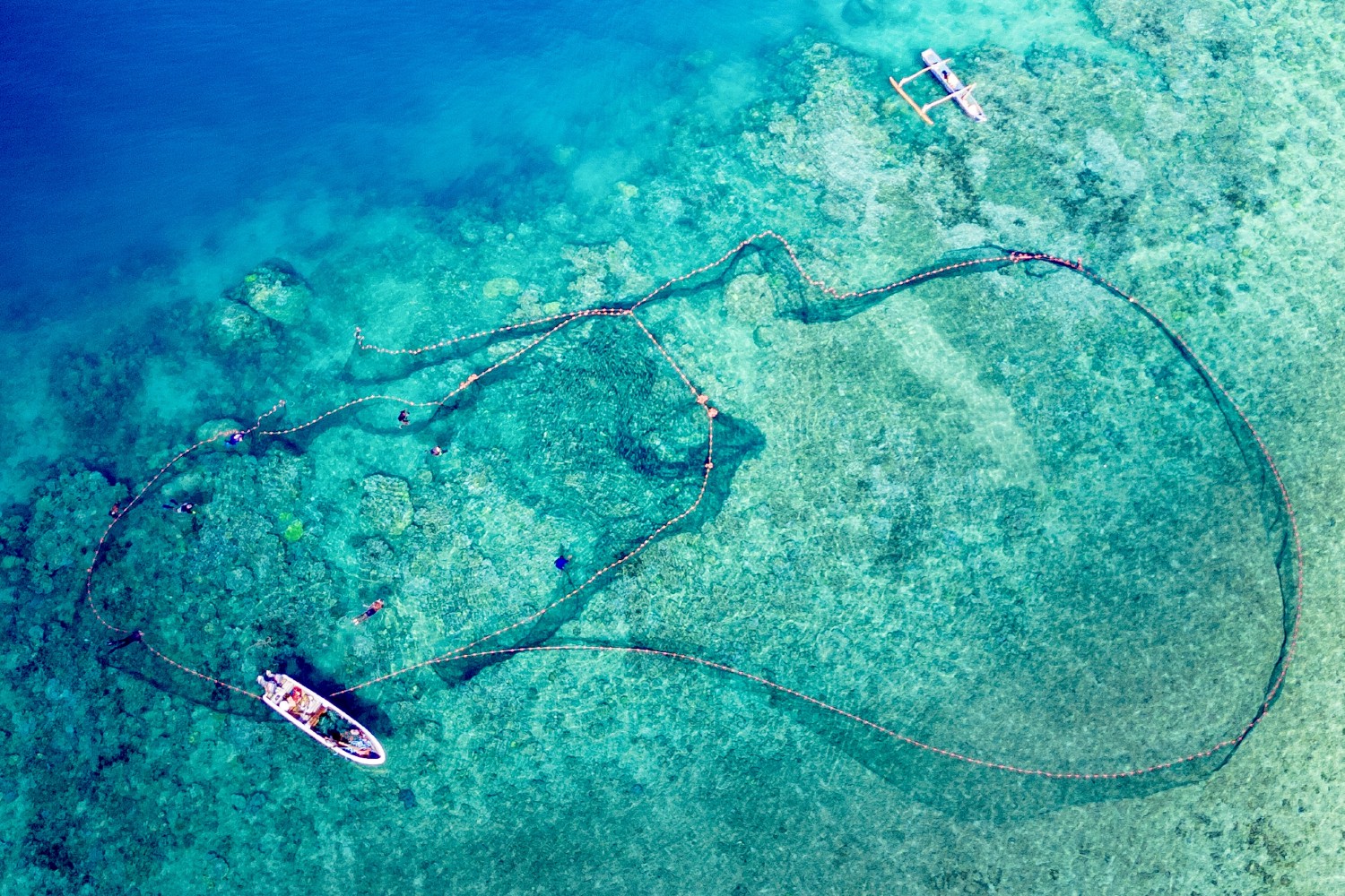 Traditional fishing in the Mayotte lagoon where spear fishing isn’t allowed so they use fishnet and the tide to capture fishes with their hands