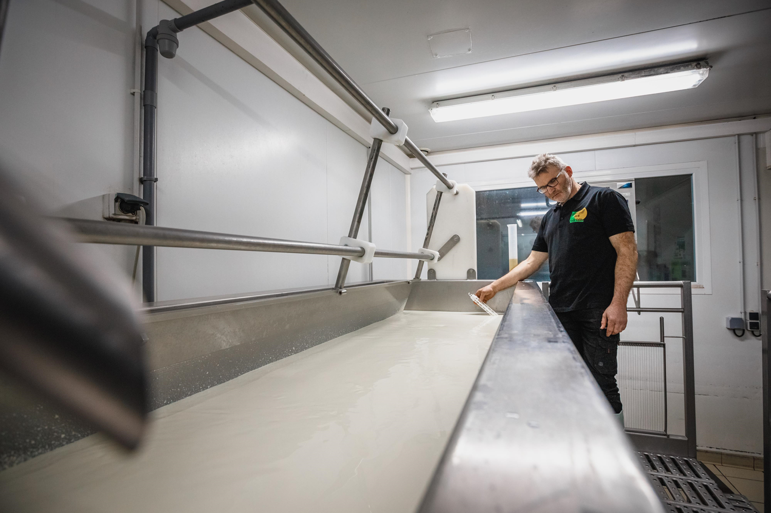 The cheese processing of milk at La Grange de la Haute Vallée follows a dual dynamic. On the one hand, it remains artisanal and respectful of the traditional methods and local flavors. On the other hand, it is carried out with modern equipment in order to meet the specific requirements and health standards of the three Auvergne PDOs produced there (Cantal, Salers, Bleu d'Auvergne). The maturing of cheese is shared between the cellars of the exploitation and those of external master refiners.