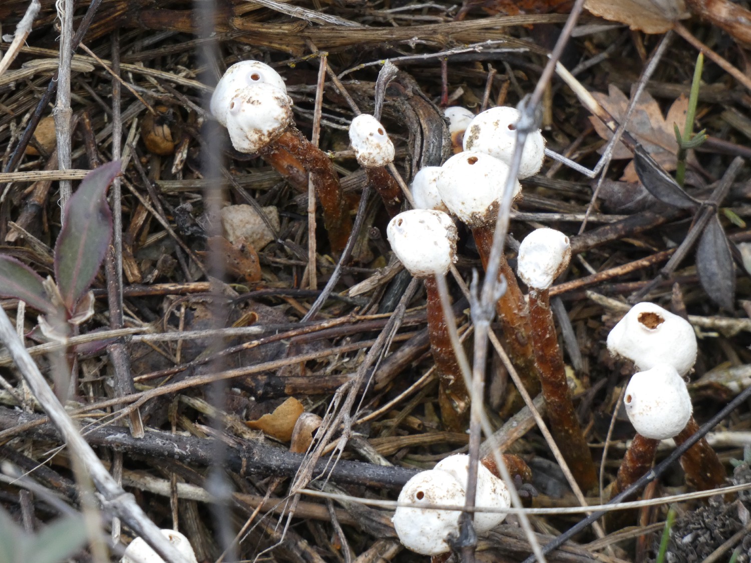 Parecen diminutos pedos de lobo, pero tienen un pie esbelto y delgado, aunque lo normal es que esté enterrado bajo el suelo. Carpóforo (himenio) en forma de cabezuela globosa de diámetro inferior a 1,5, color blanco-gris, con el ostiolo o poro apical cónico, regular y parduzco. O con otras palabras, estoma tubular provisto de un peristoma cónico de color pardo inmutable. Gleba de color pardo óxido claro. Pie 2-4, liso (al secarse vira a escamoso-acanalado), con base algo ensanchada, color de blanco a ocre, recubierto de fibrillas pardas y con granitos de arena. Esporada marrón-ocre, esporas amarillentas, globosas, poco densas y muy verrugosas.