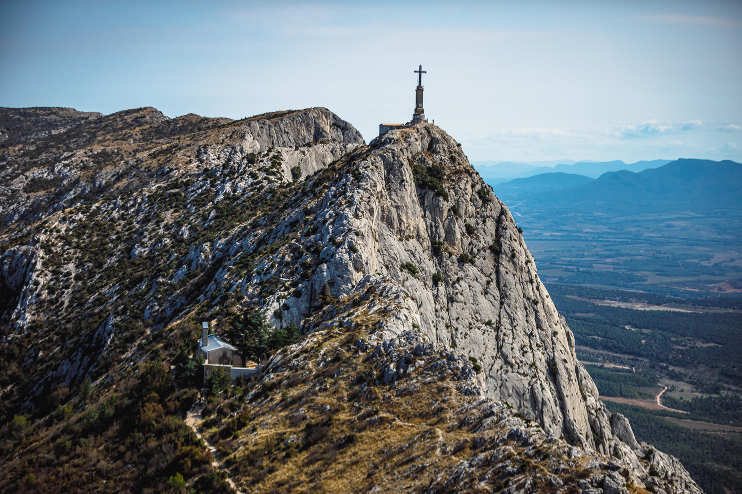 The access to the Croix de Provence from the priory of the Sainte-Victoire mountain is quite steep and rocky and does not offer different alternatives. Its high traffic has made the path extremely slippery, especially on the way down and after rain or snow. At the start of 2014, the Grand Site Sainte-Victoire, responsible for protecting and enhancing an area of 85,251 acres (34,500 ha) around the Sainte-Victoire mountain, had low walls built there to secure the surroundings of the cross.