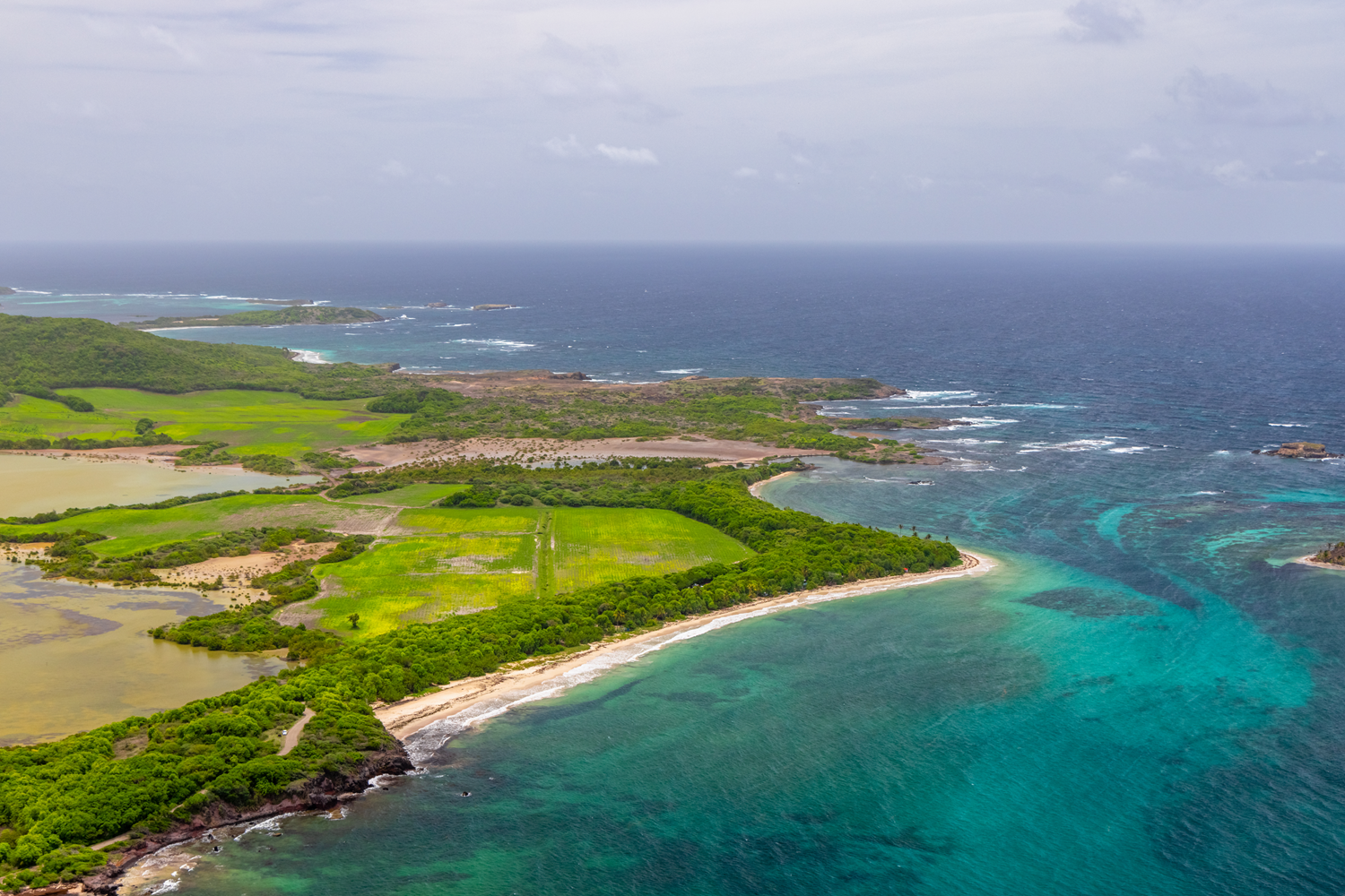 The Savane des Pétrifications (Savannah of Petrifications) extends in the municipality of Sainte-Anne near the renowned Salines beach at the southeastern tip of Martinique. It is formed by an ancient dried marsh installed on the site of a very old volcano. It is dominated by one of its remains, the Morne des Pétrifications, which culminates at 390 ft (119 m). The Savane des Pétrifications, whose altitude is close to zero, adjoins the sea and Pointe de l'Enfer over 25 acres (10 ha). It faces the emerged rock of the Table du Diable (Devil's Table), the subject of many legends.