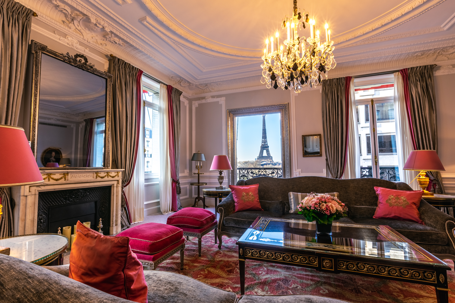 As the Plaza Athénée hotel is located on the most fashion avenue in Paris, the greatest couturiers meet there, including Maison Dior, nestled a few steps from the hotel. The Eiffel Haute-Couture suite pays tribute to the designer, so often present within the walls of the hotel that also houses the Dior Spa Institute. The couturier even created a Bar suit dedicated to the distinguished women he rubbed shoulders with at the Plaza Athénée bar. The Eiffel suite combines the chic of its decoration with the elegance of the Iron Lady.