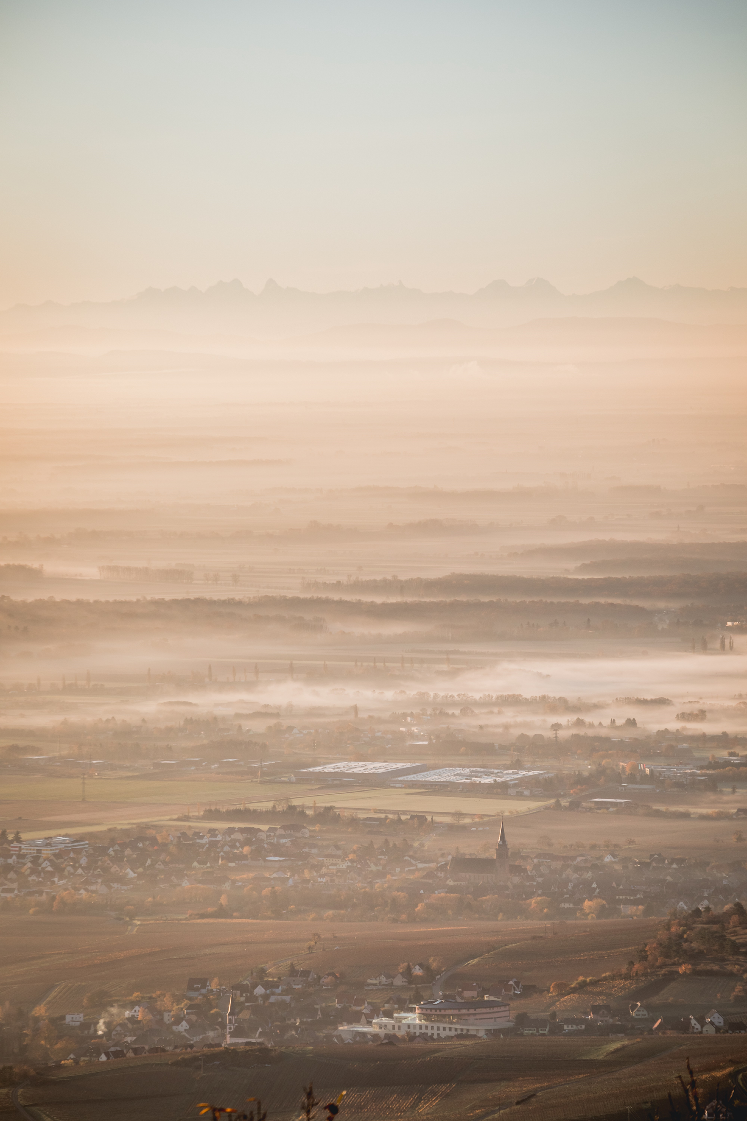 Situated on a Vosges ridge, the Haut-Koenigsbourg castle overlooks the wine route that winds through the Alsace plain from Kintzheim to Orschwiller, passing through Saint-Hippolyte, Riquewihr, Hunawihr and Zellenberg, less than 6 miles (10 km) away. Between the villages, agricultural plots are largely dedicated to vine, which has been cultivated in the region since the 9th century. The commune of Kintzheim even has an Alsace grand cru wine, the Praelatenberg, cultivated on 18.70 hectares of steep east-facing slopes. Known since 823, the Praelatenberg terroir belonged to the monks of the Benedictine abbey of Ebersmunster until the Revolution.