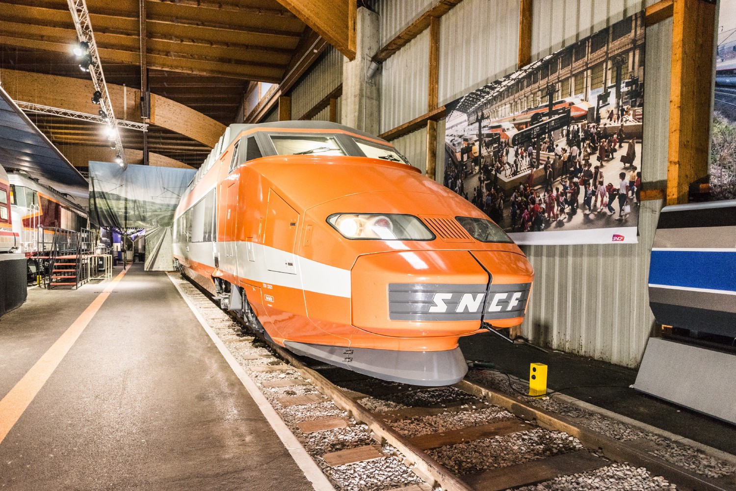On 22 September 1981, President François Mitterrand inaugurated the first high-speed line (TGV) built between Paris and Lyon. France thus entered the era of high-speed rail travel seventeen years after Japan. In the 1970s, the designer Jacques Cooper was commissioned to sketch the lines of the first TGV. This train of the future was to be a complete break with the existing trains. Cooper was therefore inspired by the Porsche Murène, an orange sports coupé. The TGV developed major innovations for safety. Such was for instance the concept of the 'articulated' and non-deformable train which allows two trailers to rest on a single bogie.