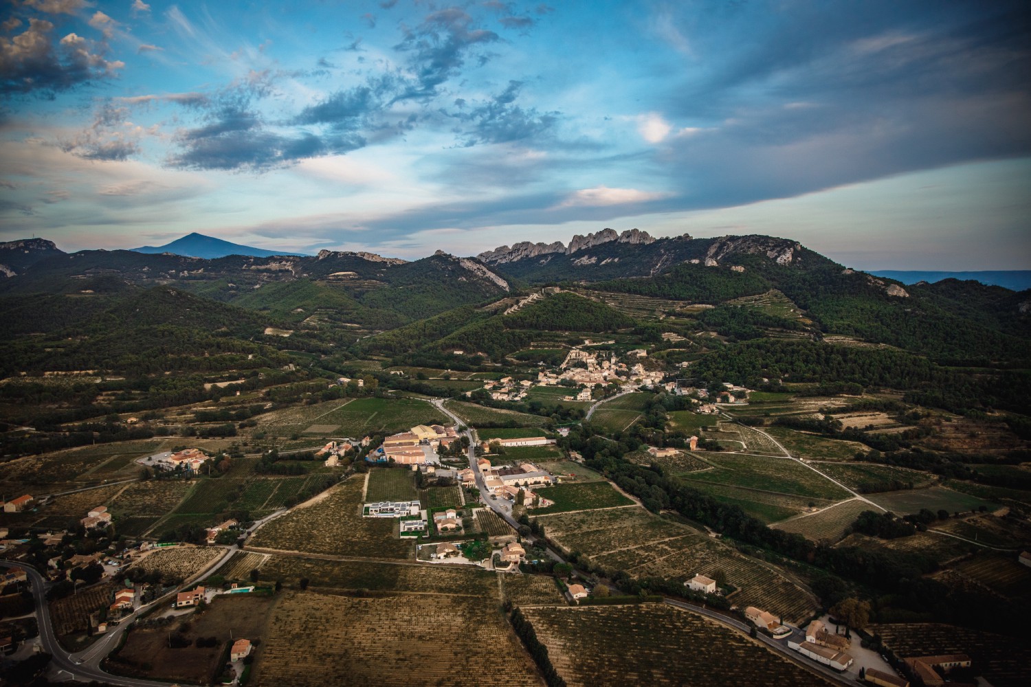 The Dentelles de Montmirail extend west of the Monts de Vaucluse and at the southwest end of the Baronnies. Their location on the edge of the Rhône valley exposed them to intense erosion that explains their jagged shape, further accentuated by the heterogeneity of the sedimentary deposits (thick limestone banks to the north, faults and vertical limestone slabs to the south) that constitute them. The Dentelles de Montmirail follow the east-west orientation of the Pyrenean-Provençal folding. They are delimited to the northeast by the crest of Saint-Amand, to the northwest by the Ouvèze plain, to the south by that of the Comtat Venaissin, and to the east by the fault that separates them from the foothills of the Mont Ventoux.