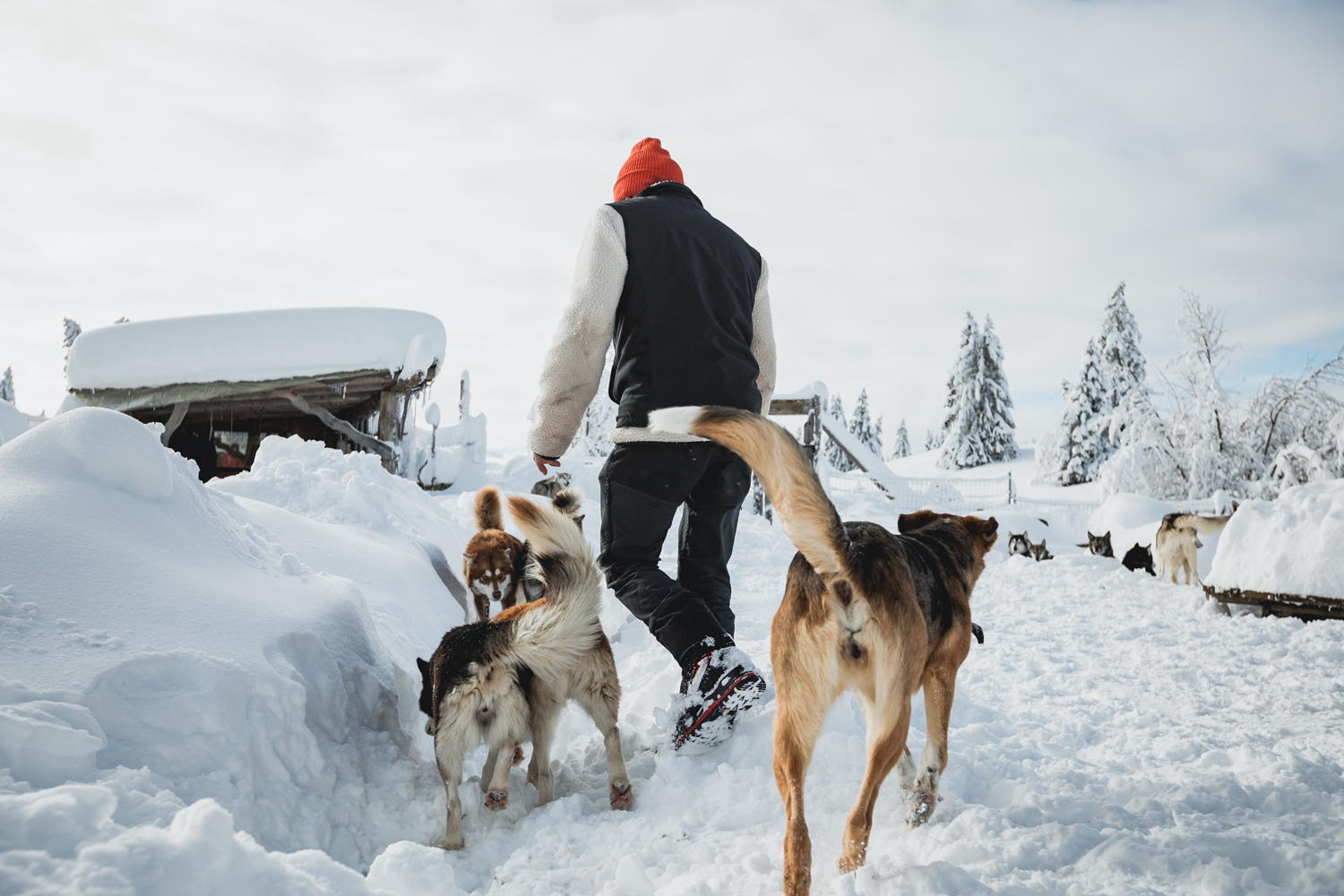 A musher, like Pierre Daniel from Les Bois Fous estate in Septmoncel-les-Molunes in the Haut-Jura, can be accompanied by several breeds of dogs in his activity. The generally preferred breeds are the Siberian Husky, the Greenlander, the Samoyed, the Alaskan Malamute which have common qualities of resistance to cold, hardiness, obedience and adaptability to the pack.