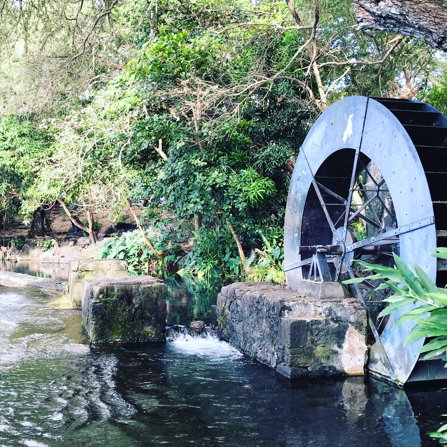 Moulin à eau, monument protégée de la Réserve naturelle nationale de l’Etang de Saint-Paul. Vestige de l’activité sucrière de la zone