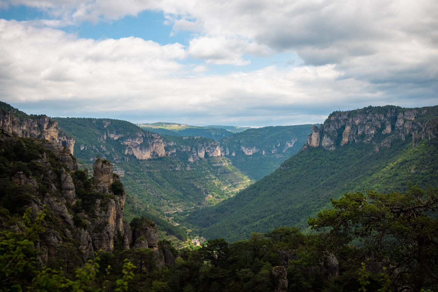 The Gorges de la Jonte, located between the Causse Noir and the Causse Méjean to the north, extend over more than 12.43 mi (20 km). This renowned climbing site with limestone rocks is also a natural observatory for raptors, and especially vultures reintroduced in the region since the 1980s. The Gorges de la Jonte are part of a site listed as a Great site of France and bear the name of the wild river flowing from the Aigoual, one of the massifs of the Cévennes National Park. The region is famous for climbing thanks to the limestone formations dotting the heart of the Grands Causses and creating its unique landscapes.